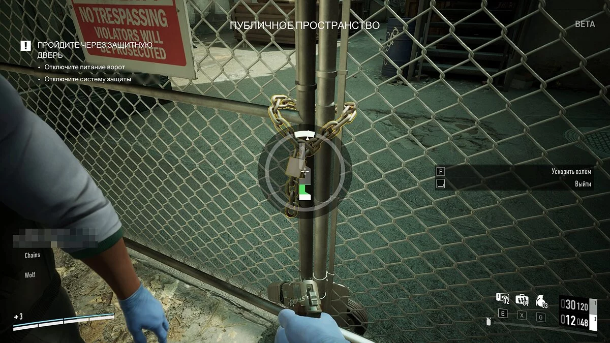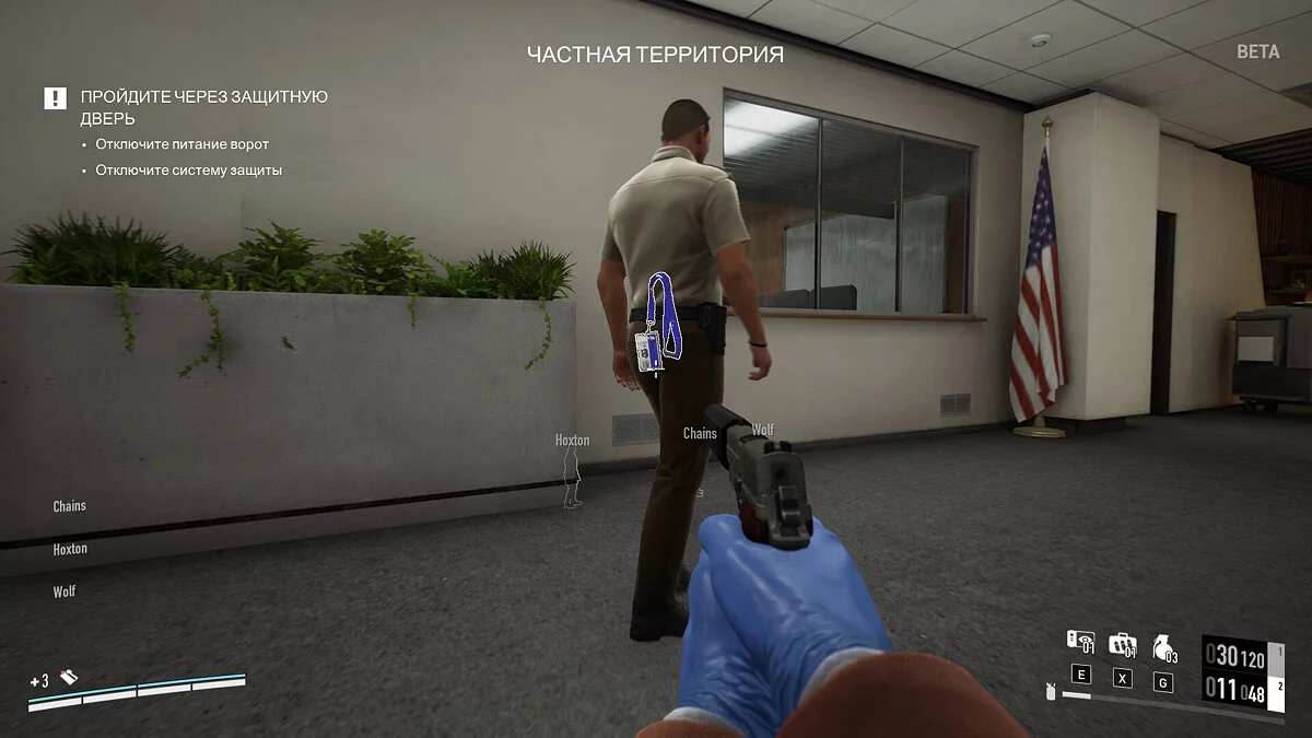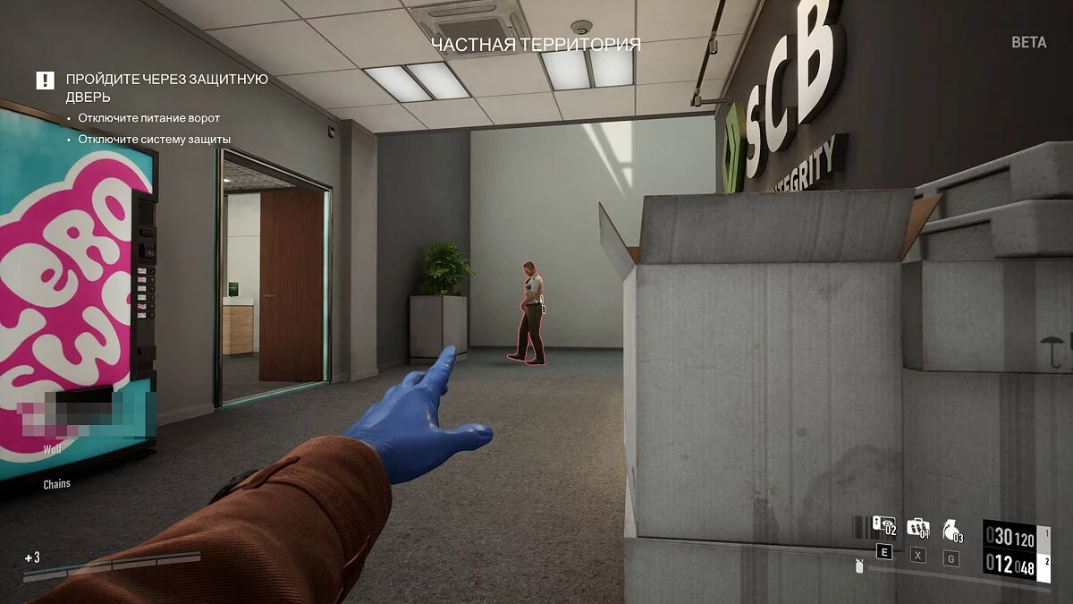 - Частная территория — на игроков реагируют камеры, охрана и некоторые работники. Если вас обнаружат, то вернут в безопасную зону и вежливо попросят не повторять подобное. Ограничений на такое действие нет, что просто потратит ваше время. Если вы играете в кооперативе, можно таким образом безопасно убирать внимательных охранников;