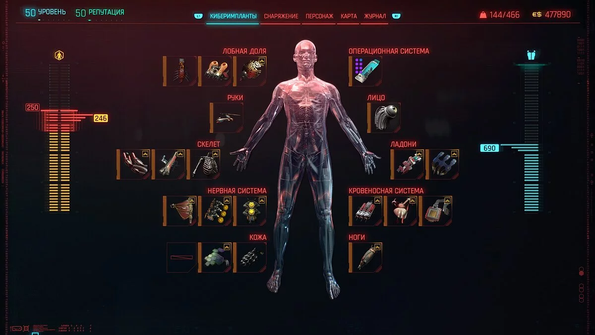 Изменения коснулись и имплантов. Теперь у Ви есть допустимый лимит нагрузки, которые различные улучшения оказывают на организм. Предел увеличивается способностями и некоторыми аугментациями. Также на каждую часть тела можно установить сразу несколько «железок» и некоторые скиллы увеличивают их число. В случае максимальной нагрузки игра предупреждает, что Ви может впадать в ярость, но у нас за несколько часов игры это состояние так и не наступило.