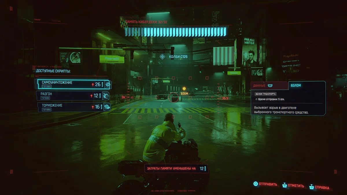 Играть в догонялки с полицией стало интересно еще и потому, что теперь Ви может без проблем стрелять из транспорта. К тому же появилось сразу несколько способностей нетраннера, направленных на программирование чужого авто. Например, машину можно настроить на самоуничтожение или резкое торможение.