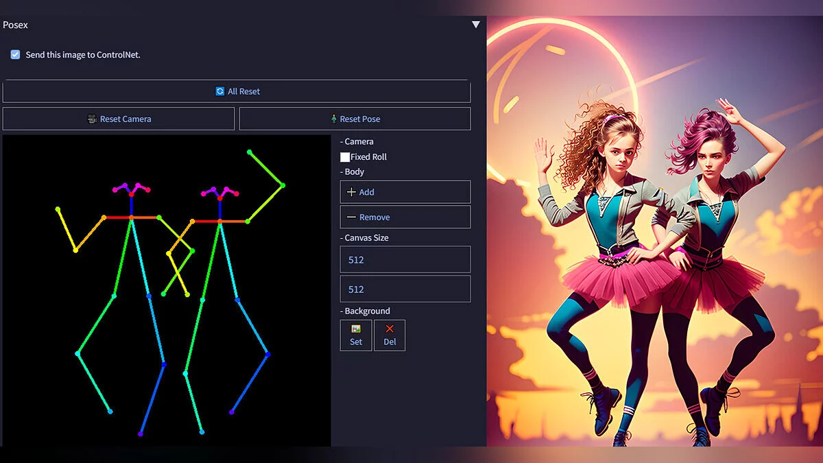 Пользователи создали множество плагинов, особо продвинутые из которых (например, ControlNet) даже позволяют выбрать позу генерируемого персонажа или использовать карту глубин, чтобы создать фото здания или цветочной клумбы в форме надписи.
