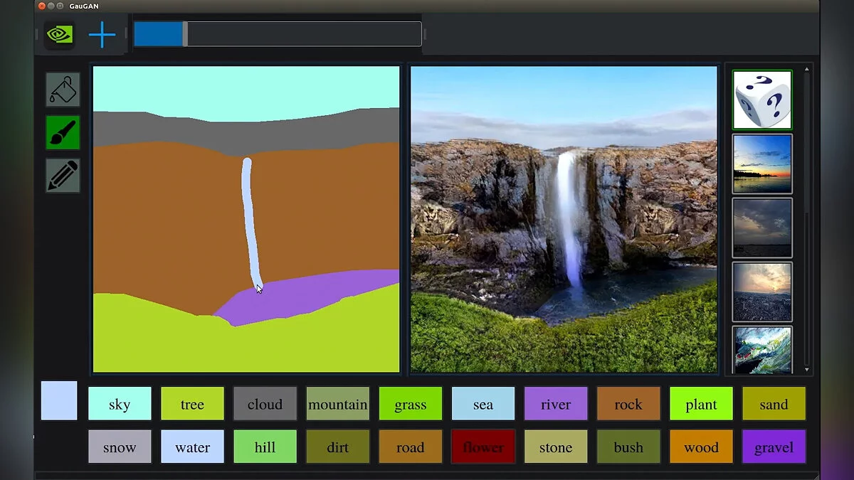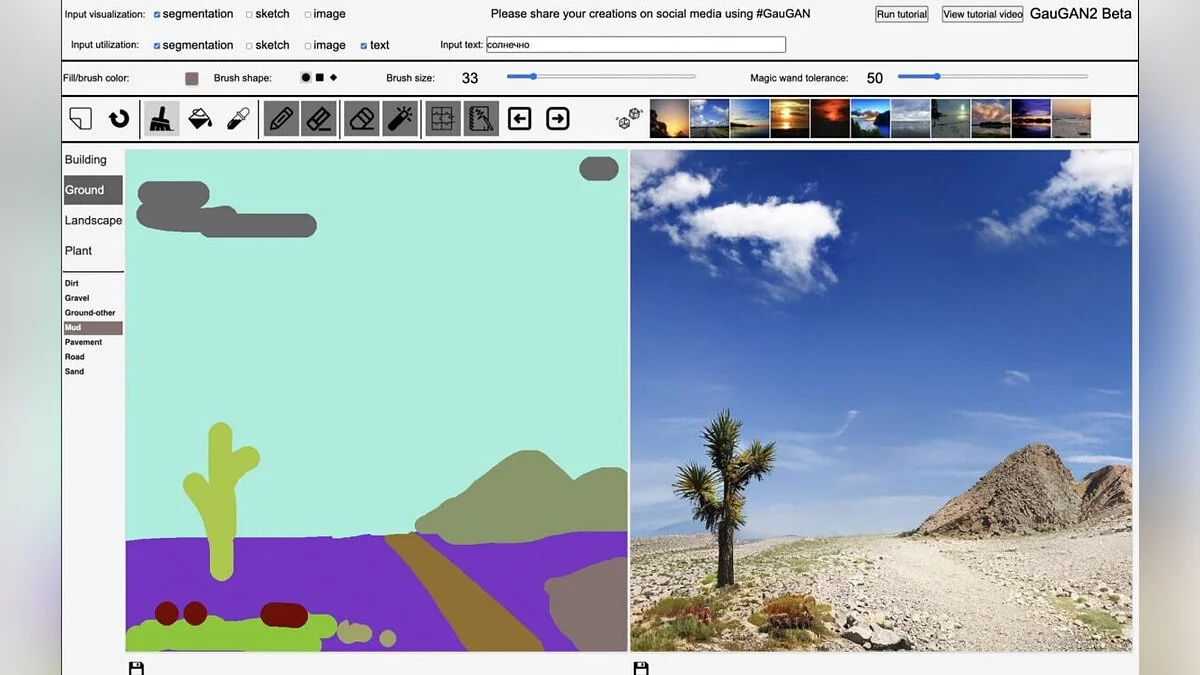 С помощью GauGAN вы сможете сделать буквально пару мазков, а программа, обученная на миллионах изображений, попытается понять вас и сделать из «paint-шедевра» фотореалистичное изображение.