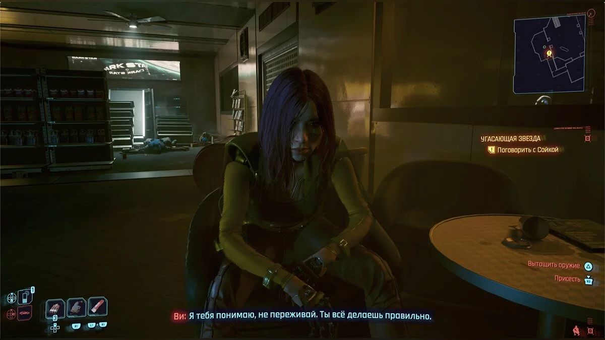 В совокупности с отличной актёрской игрой мы получаем невероятную историю, которая дарит атмосферу «Киберпанка», возможно, даже больше, чем оригинальная игра. Именно в DLC ощущается та самая безнадёжность и всеобщее равнодушие мира, где каждый заботится лишь о себе, а смерть близких стала чем-то обыденным. Без спойлеров обойтись трудно, но нечто подобное можно было почувствовать во второй половине аниме «Киберпанк: Бегущие по краю» (Cyberpunk: Edgerunners). На Ви и героев неумолимо надвигается ужасная развязка, и живыми из неё выйдут далеко не все.