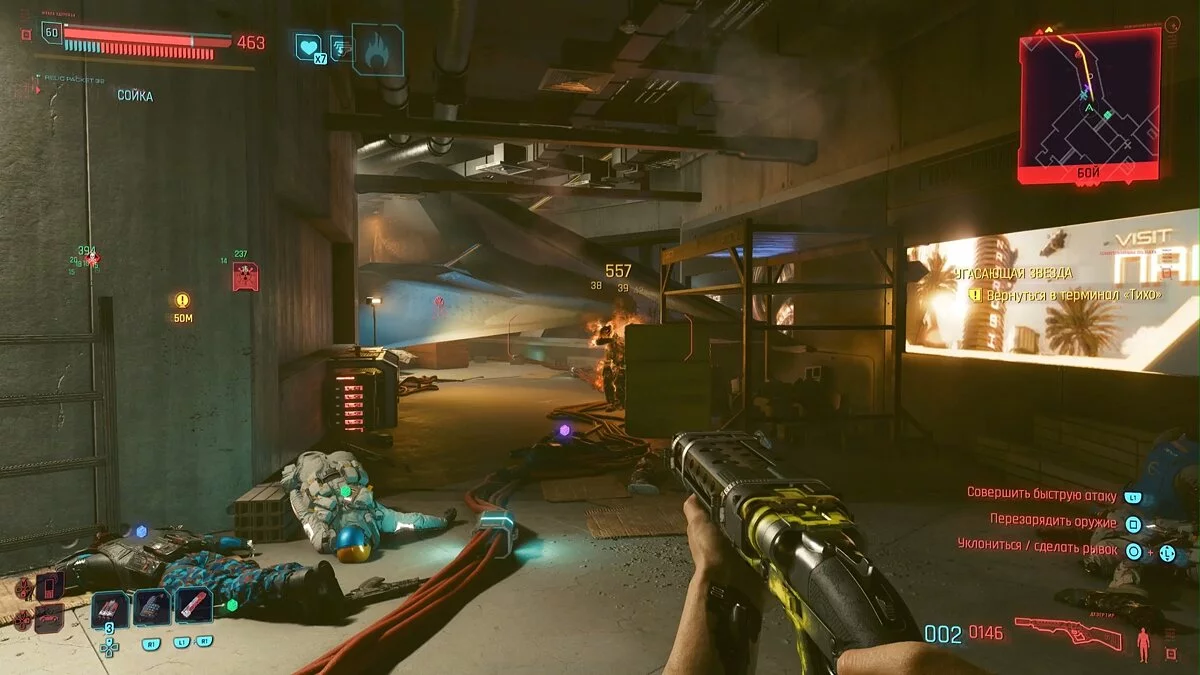 Несмотря на мощнейшую сюжетную основу, это не вся игра, поэтому стоит обсудить и геймплей. Здесь мы советуем прочитать нашу статью про обновление 2.0, где разбираем все нововведения, однако после 17 часов мнение стало более комплексным. Во-первых, стрельба. Враги поумнели, а оружие ощущается лучше. Но, к сожалению, даже на высоких уровнях сложности стрелять в Cyberpunk 2077: Phantom Liberty всё ещё скучно. Идти в открытую без имплантов и способностей взлома бессмысленно.