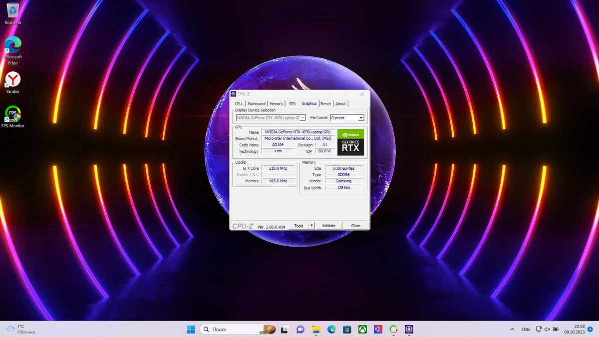 - Видеокарта: NVIDIA GeForce RTX 4070 для ноутбуков, 8 ГБ GDDR6;