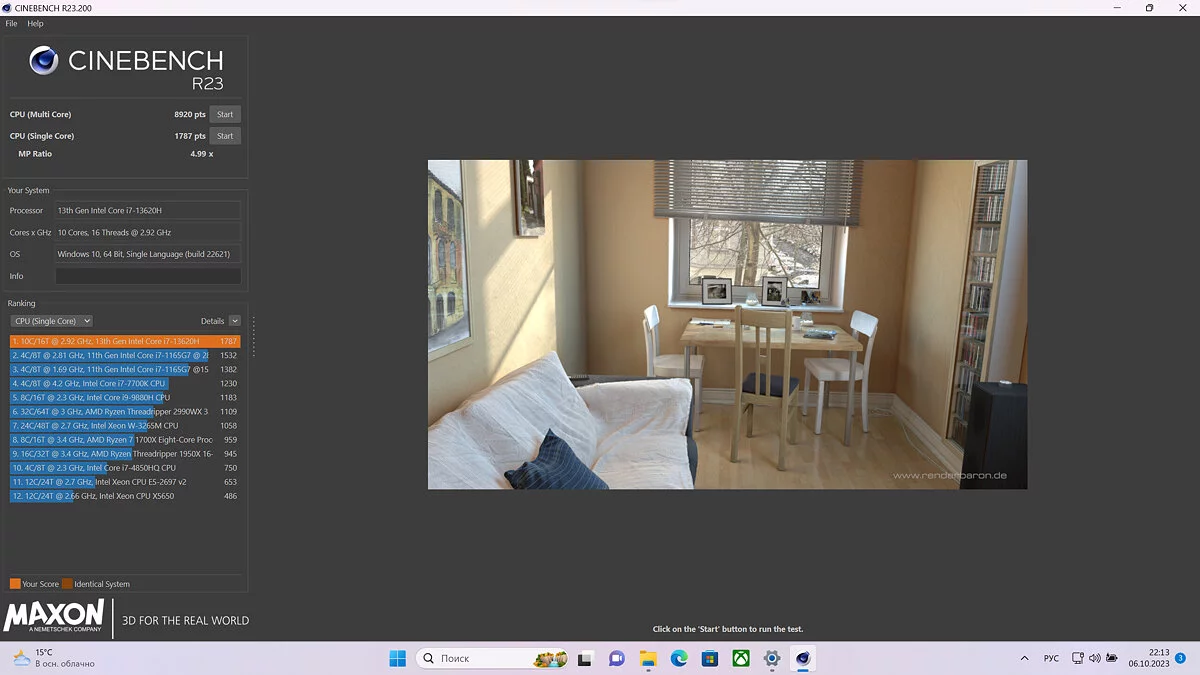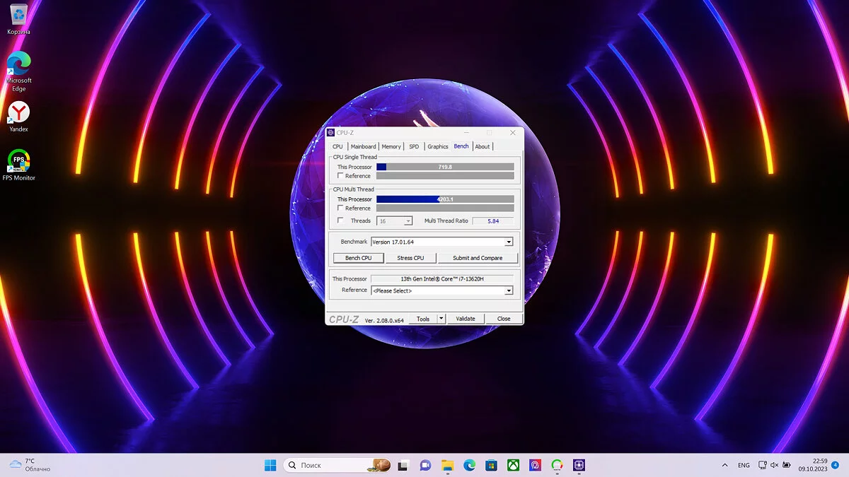 Ноутбук MSI Katana 17 B13VGK-471RU мы проверили в синтетических тестах Cinebench R23, CPU-Z и CrystalDiskMark. Результаты на скриншотах.