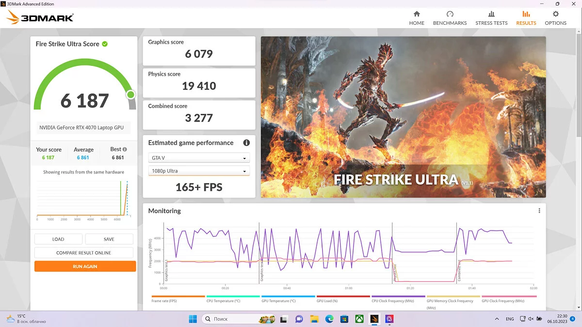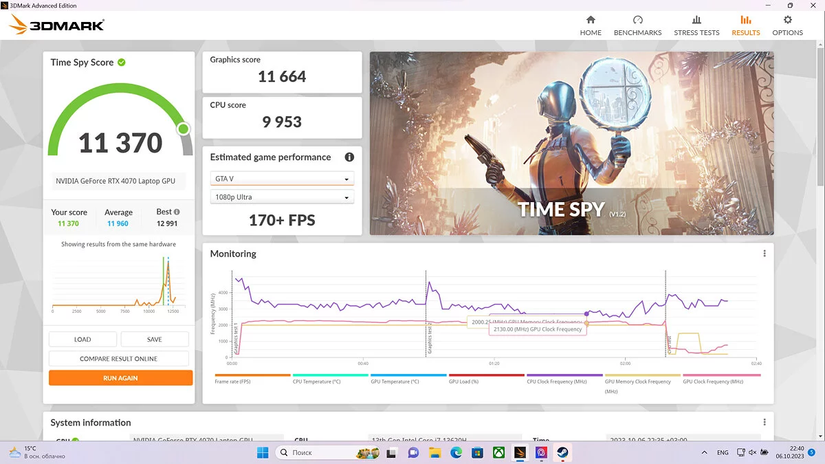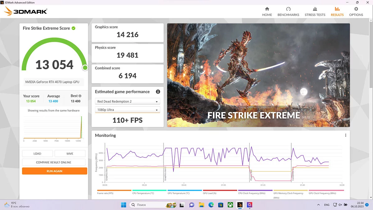 Все игровые тесты были проведены в режиме максимальной производительности. Температура процессора Intel Core i7-13620H с максимальным TDP в 115 Вт в игровых тестах не поднималась выше 80 градусов. Температура видеокарты RTX 4070 Laptop c максимальным теплопакетом в 115 Вт редко поднималась выше 75 градусов.