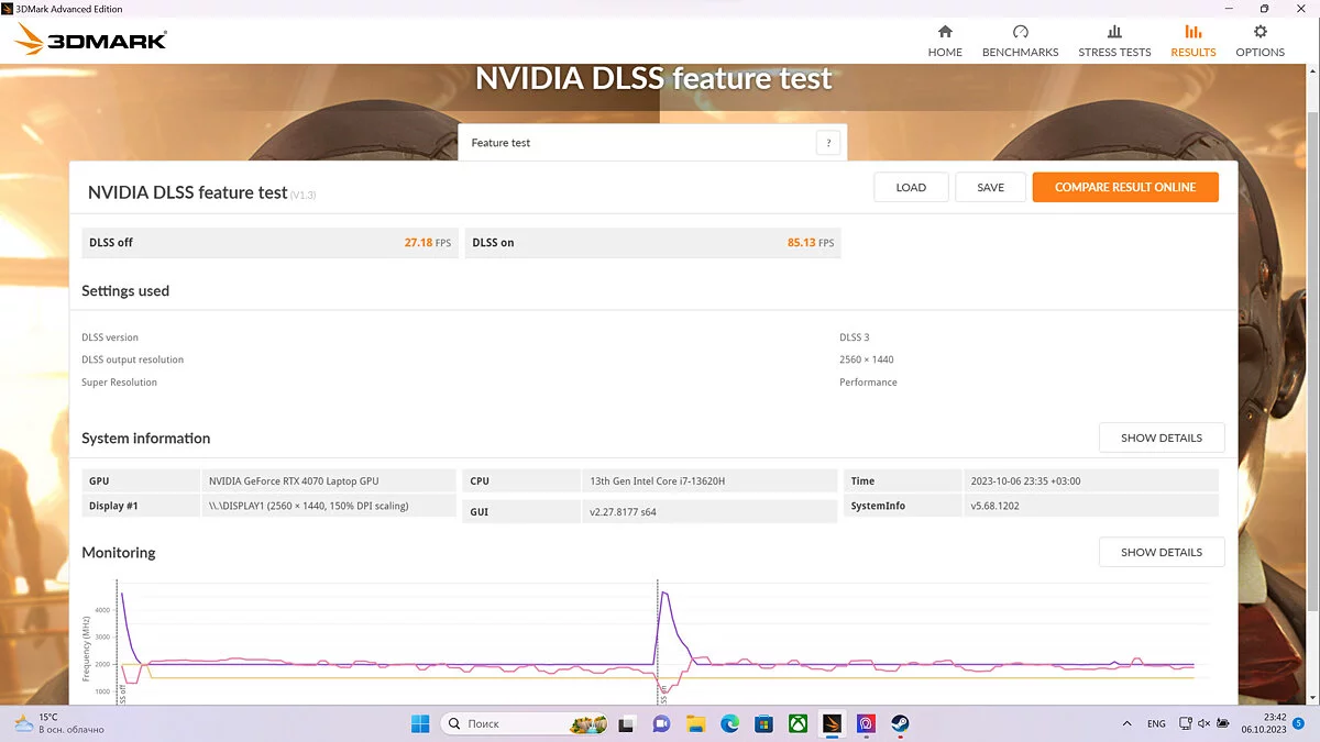 Тест с модификацией с DLSS и генерацией кадров улучшил ситуацию. С ней игра показала уже 75-80 кадров в секунду.
