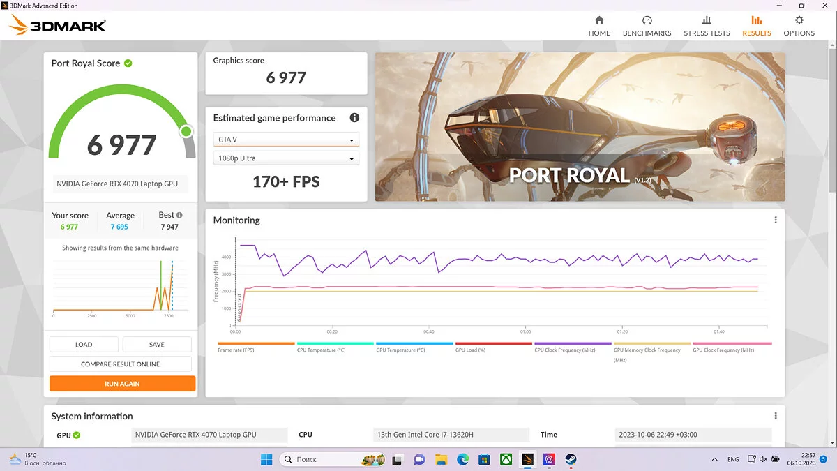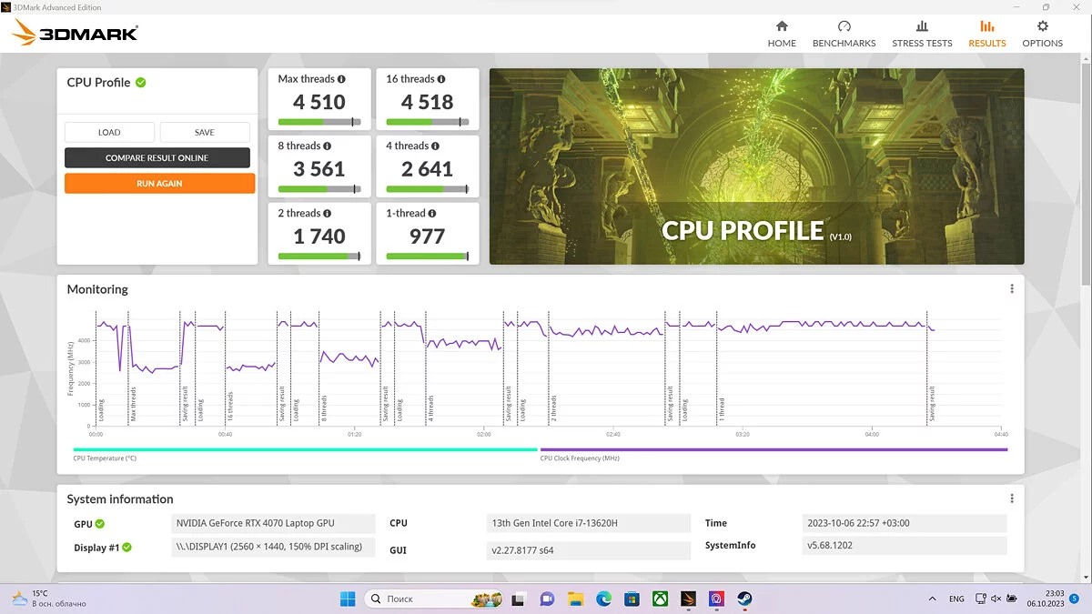 Также мы оценили мощность ноутбука в 3DMark: в тестах Fire Strike Ultra, Fire Strike Extreme, Time Spy, Time Spy Extreme, Port Royale, CPU Profile и Storage Benchmark для проверки скорости загрузки игр на SSD.