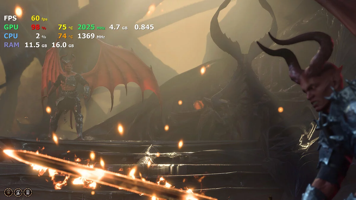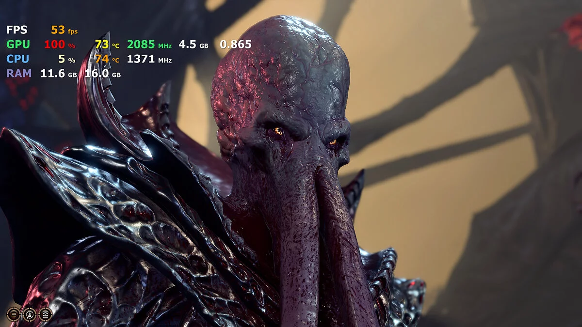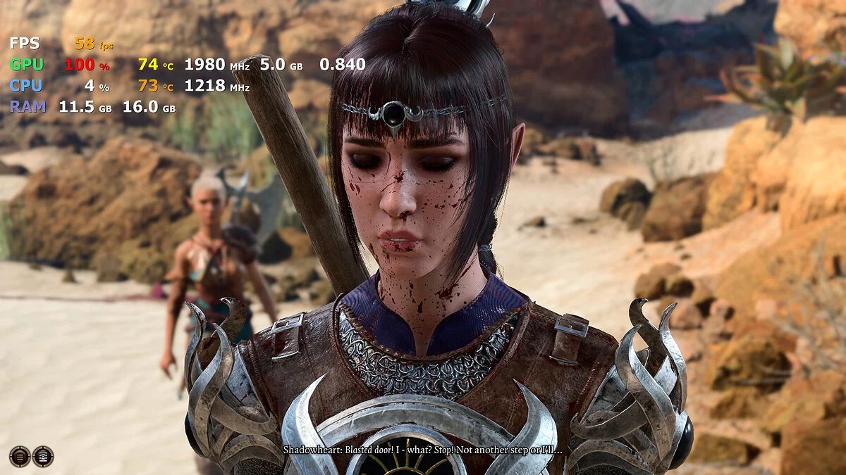 Baldur's Gate 3. На максимальных настройках игра всё же опускалась ниже 60 FPS, хоть просадки и были редкими.