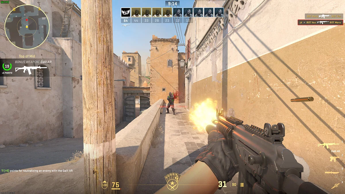Counter-Strike 2. Невероятных киберспортивных значений получить не удалось, но на максимальных настройках можно увидеть стабильные 60 FPS.