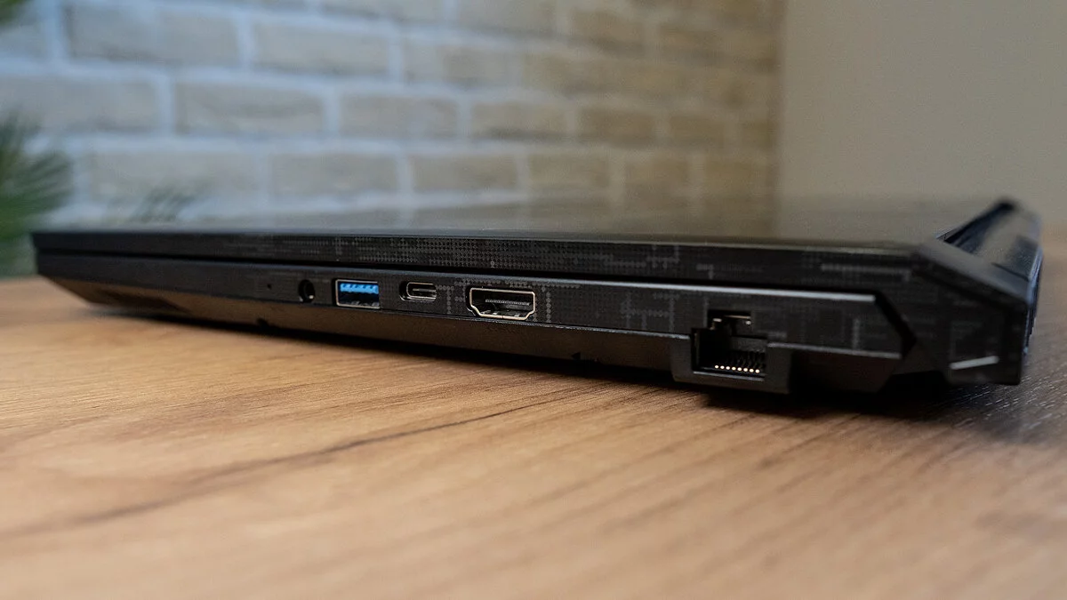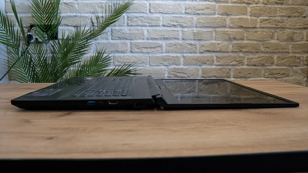 Справа находится RJ-45, полноразмерный HDMI 2.1, два разъема USB 3.2 Gen1 — Type-A и Type-C (с поддержкой функции DisplayPort), а также миниджек для аудио. Здесь же индикатор зарядки. Thunderbolt USB-C нет.
