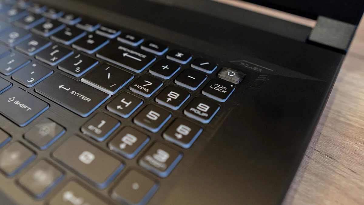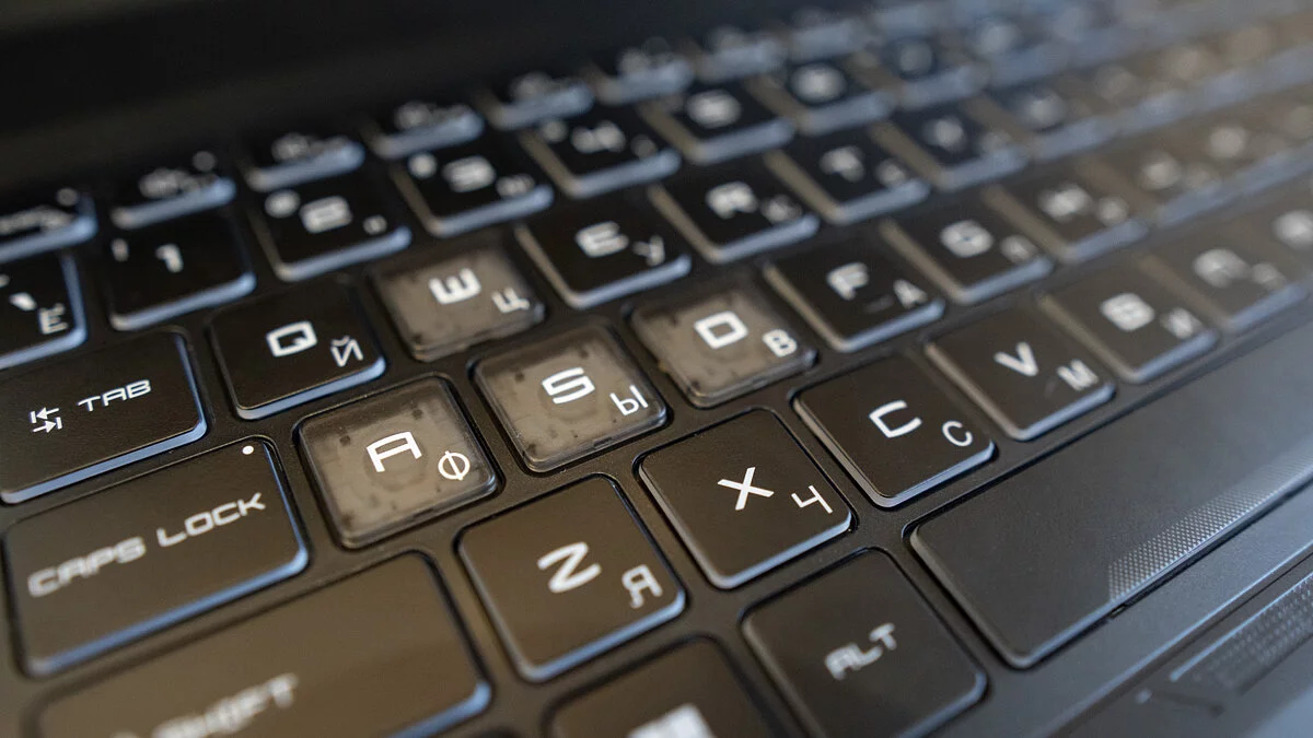Клавиатура у Katana 17 B13V мембранная и полноразмерная, с цифровым блоком. Расположена в центре, отступы по бокам составляют 40 мм. Клавиши WASD и кнопка включения выделены. Ход клавиш составляет примерно 1,7 мм. Сканера отпечатка пальца нет. RGB-подсветка отключаемая, и по традиции легко настраивается во вкладке Mystic Light внутри приложения MSI Center.