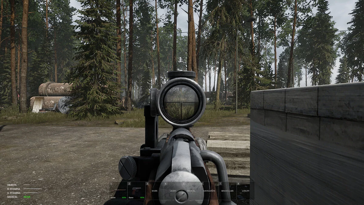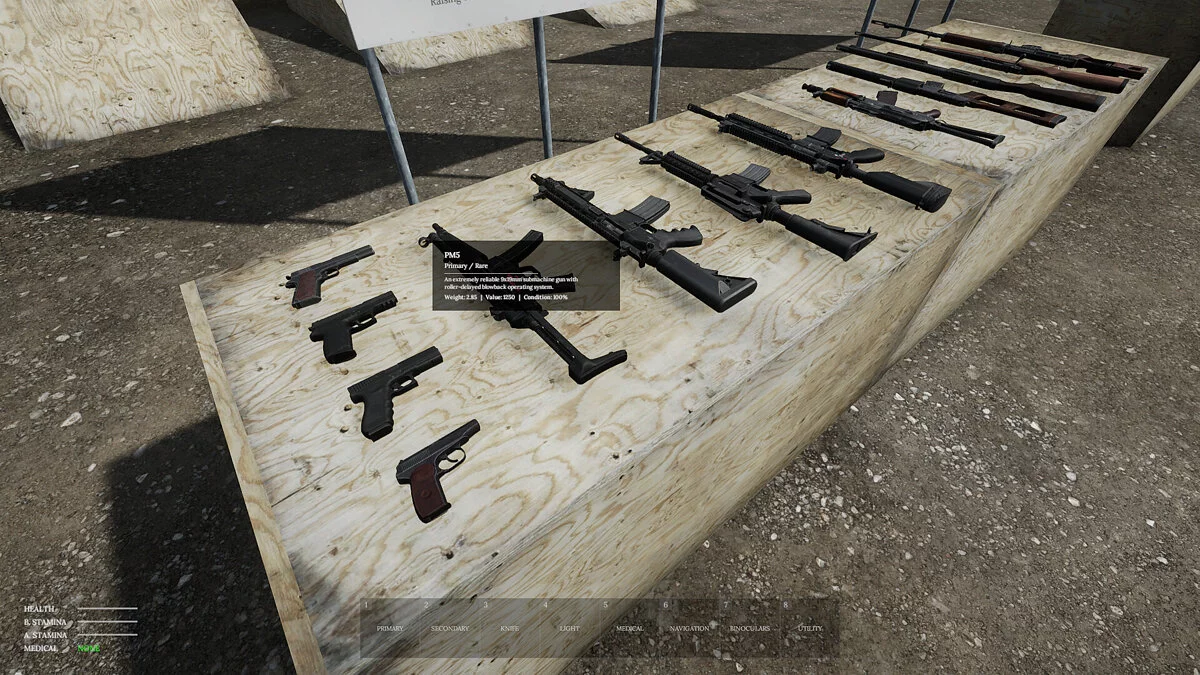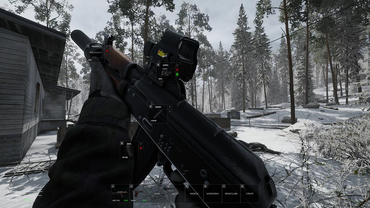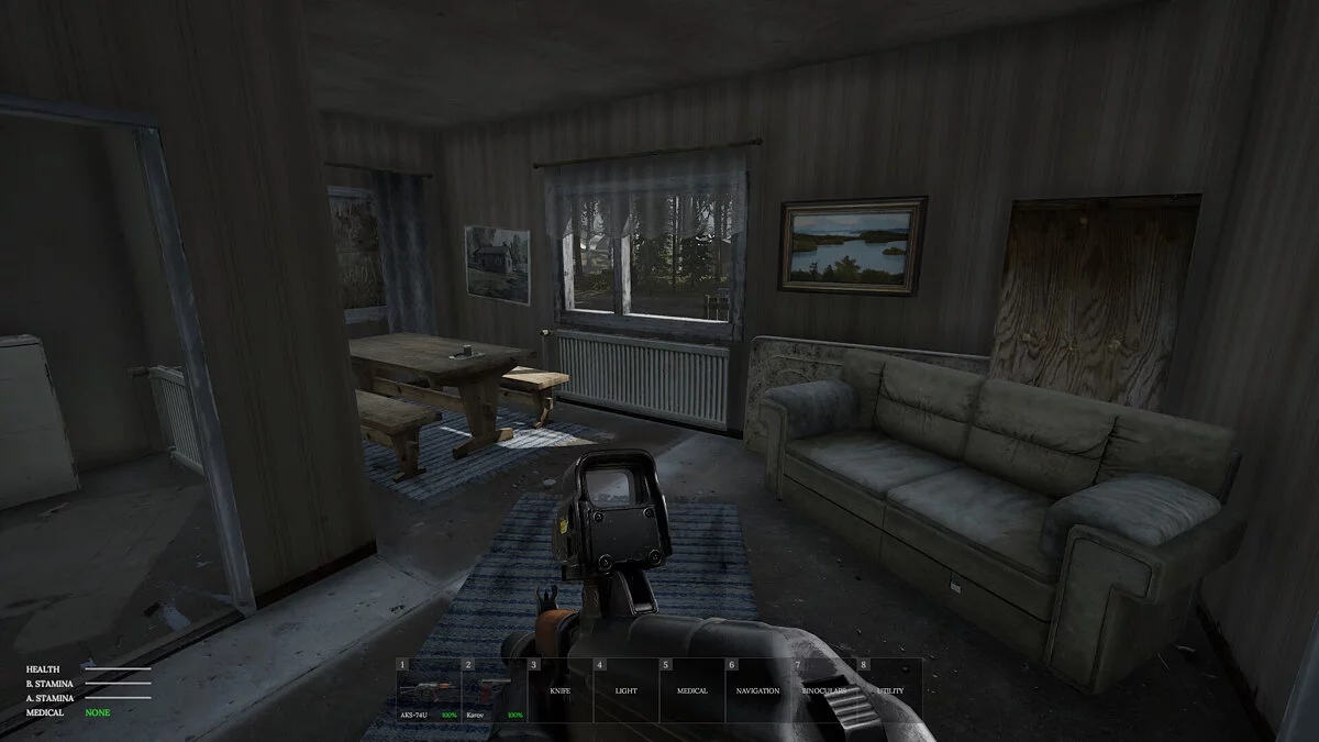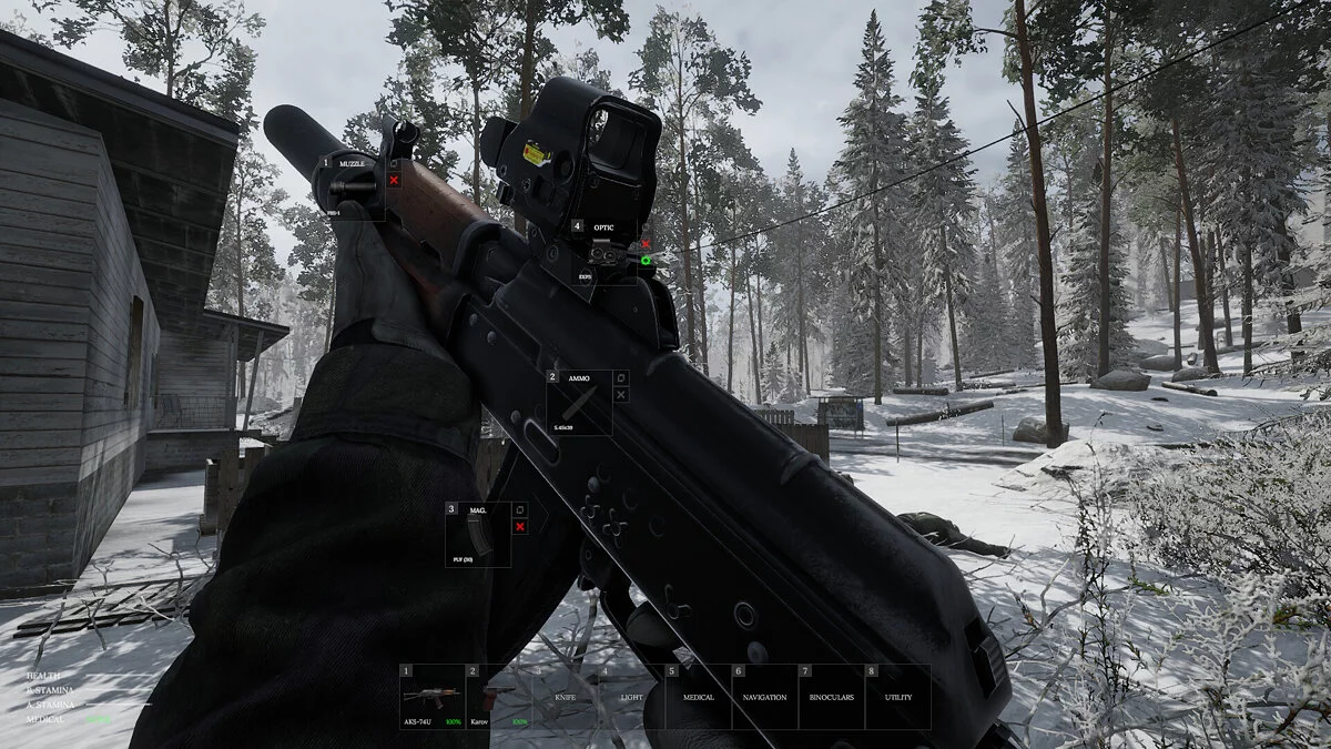 Мы можем взглянуть на то, как выглядит сбор лута и расстановка предметов в мире, какое оружие и обвесы для него уже добавили в игру и как ощущается стрельба. Ощущается она, к слову, достаточно хардкорно. Не на уровне ArmA или Escape From Tarkov, но и казуальной её назвать точно нельзя. Оружие наносит много урона и перестрелки — дело крайне рискованное.