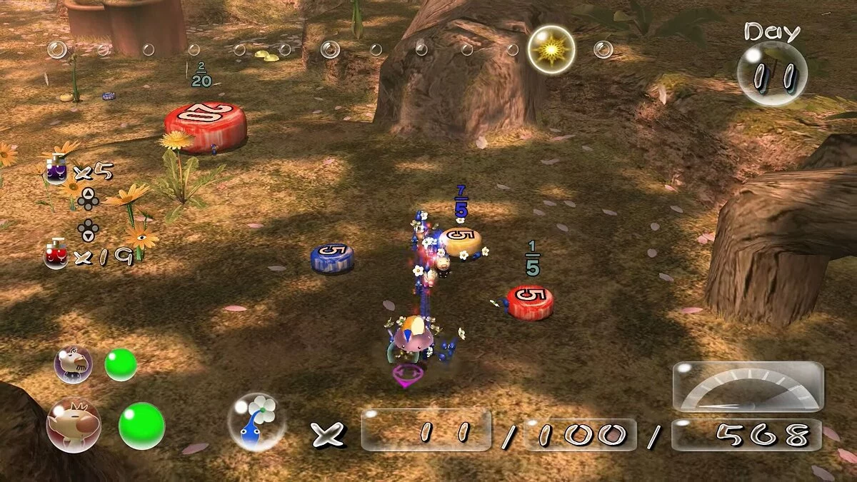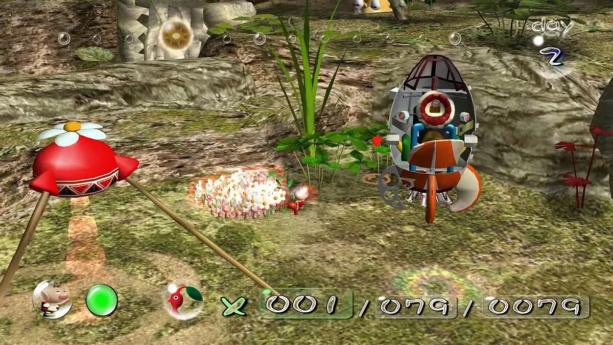 Игровой процесс в целом не отличается от четвертой части. Обзор на нее вы можете прочитать здесь. Pikmin — особая смесь из стратегии и головоломки, где игрок, управляя крошечными существами — пикминами, собирает артефакты и исследует подземелья. Юниты делятся по цветам и соответствующим способностям: красные — сильные бойцы, имеют сопротивление огненной стихии; желтые — более легкие по весу, их можно подбросить на более высокий уступ, а еще они невосприимчивы к электричеству; синие — не боятся воды и помогают собратьям других цветов перемещаться по жидким препятствиям. Да, в первой части всего три типа пикминов, но их за глаза хватает для большинства интересных головоломок.