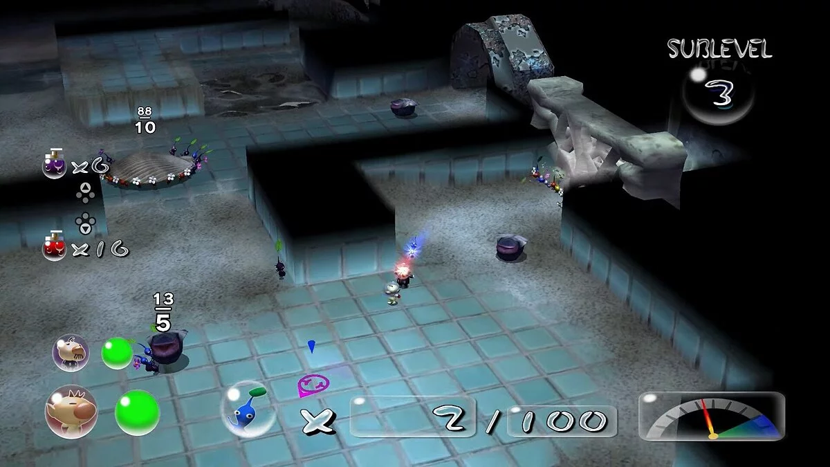 Первые части Pikmin неплохо сохранились для своих лет, но на фоне недавней «четверки» устаревшие технологические моменты бросаются в глаза. Искусственный интеллект пикминов и противников оставляет желать лучшего. Малыши могут запросто потеряться на просторах локации или застрять в каком-нибудь объекте. К управлению и менеджменту нужно привыкать. Кривая сложности довольно хаотичная. Некоторые уровни проходятся по щелчку пальцев, а другие заставляют упорно перебирать варианты действий. С боссами схожая ситуация: одних мы без труда побеждали, а другие заставляли перепроходить подземелье заново, так как армию пикминов можно пополнить только на поверхности.