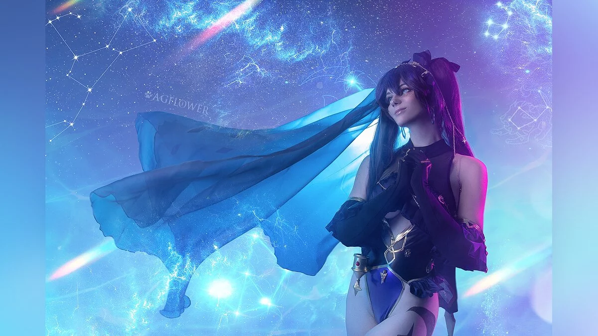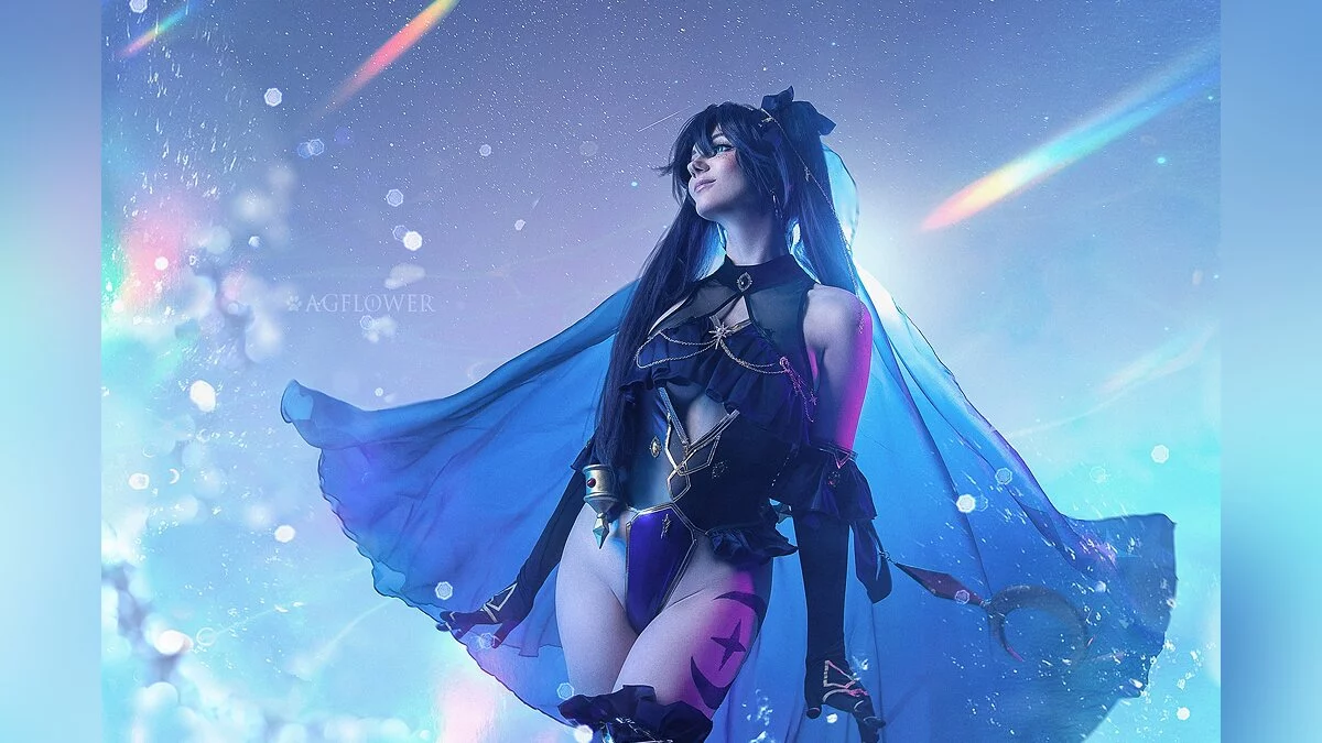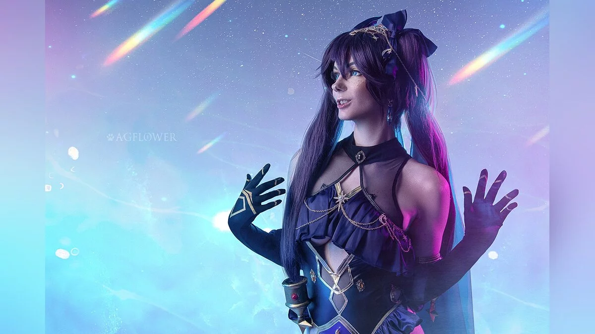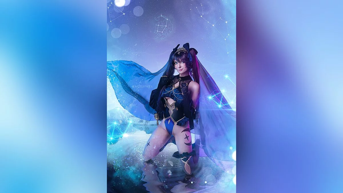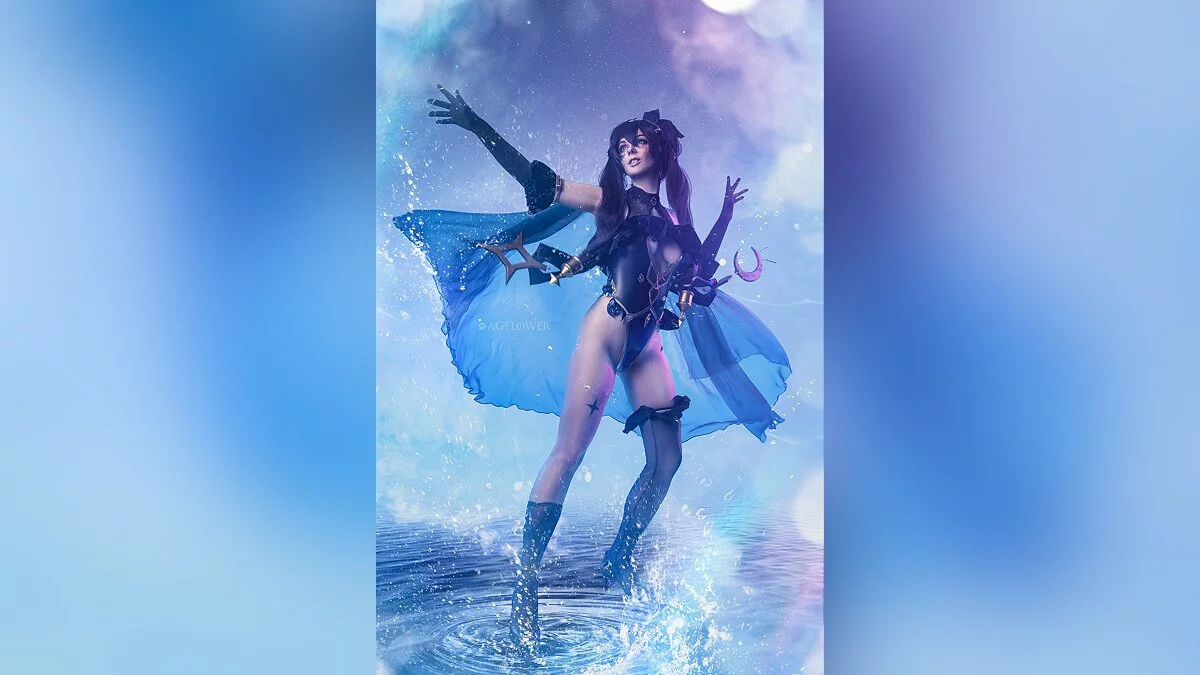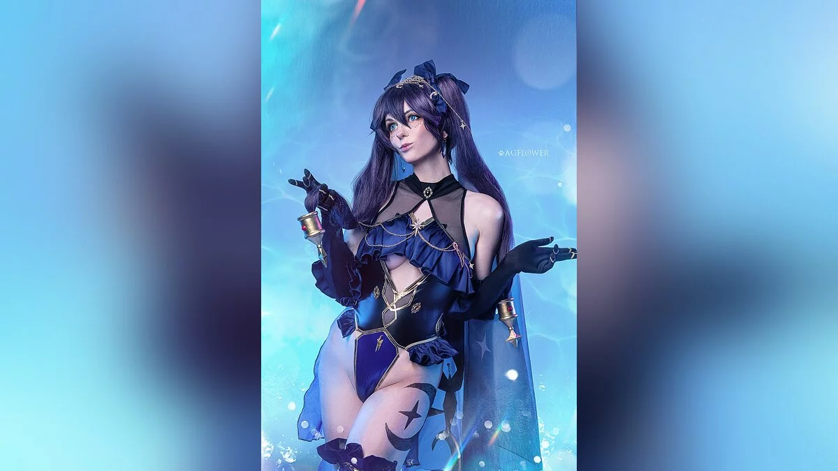 Во вселенной Genshin Impact Мона — девушка-астролог, которая занимается этой наукой ради знаний, а не денег. Она всегда говорит людям правду, в то время как её клиенты хотят услышать сладкую ложь о счастливом будущем. В результате, прогнозы Моны мало кому нужны. В бою девушка выступает как героиня поддержки, которая наносит урон стихией воды. Косплей на неё сделала Алёна Сысуева. За основу образа взят арт от Princess Ailish.