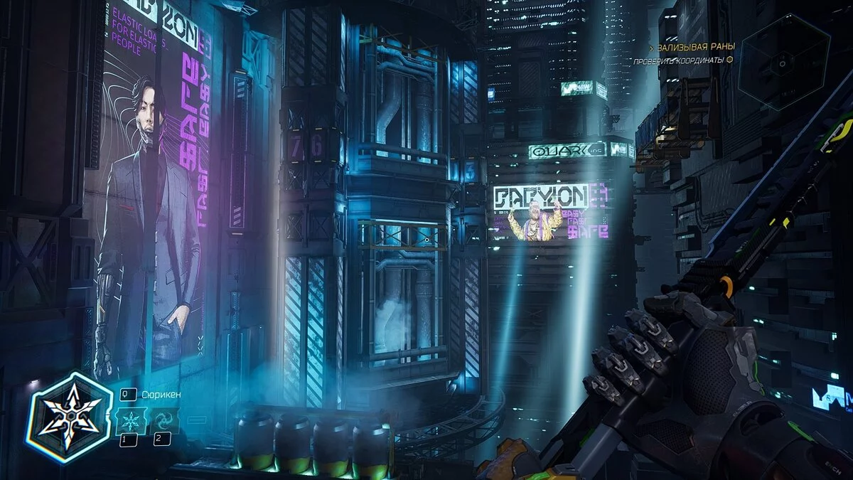 Но есть в Ghostrunner 2 и несколько точечных изменений, которые дарят новые ощущения от игрового процесса. Во-первых, у главного героя появилась стамина, на которую разработчики повесили рывки и блокирование входящего урона. Напомним, что раньше у первого был ограниченный по времени кулдаун, а для второго требовались мгновенная реакция и точный расчет в таймингах парирования. Благодаря только одному изменению, сражаться стало заметно проще. Но это не значит, что у игрока теперь всегда будет преимущество в битвах. Довольно быстро в Ghostrunner 2 появятся противники, которым плевать на блокирование. Вдобавок, стамины на весь входящий урон зачастую не хватает для выживания.