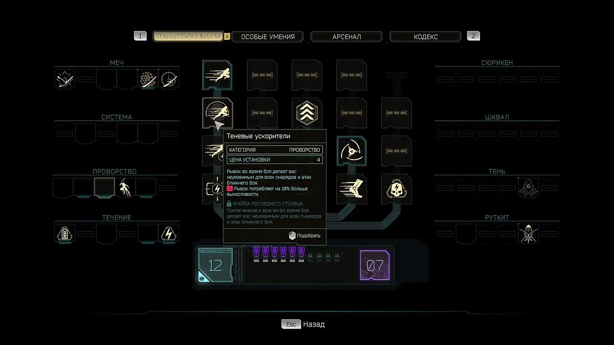 «Тетрисоподобная» прокачка из первой части осталась в прошлом. Теперь новые способности открываются стандартным способом — через ветви прогрессии. Это упрощение позволяет подбирать более эффективный билд без заморочек с геометрическими фигурами и другими неприятными ограничениями. Теперь можно попробовать больше способностей за одно прохождение сюжетной кампании. Так, закупившись перками для сюрикенов, вы получите значительное преимущество в сражениях на расстоянии. А собрав сет для катаны, у вас увеличится окно для парирования, за успешное выполнение которого дают много очков для покупки новых способностей.