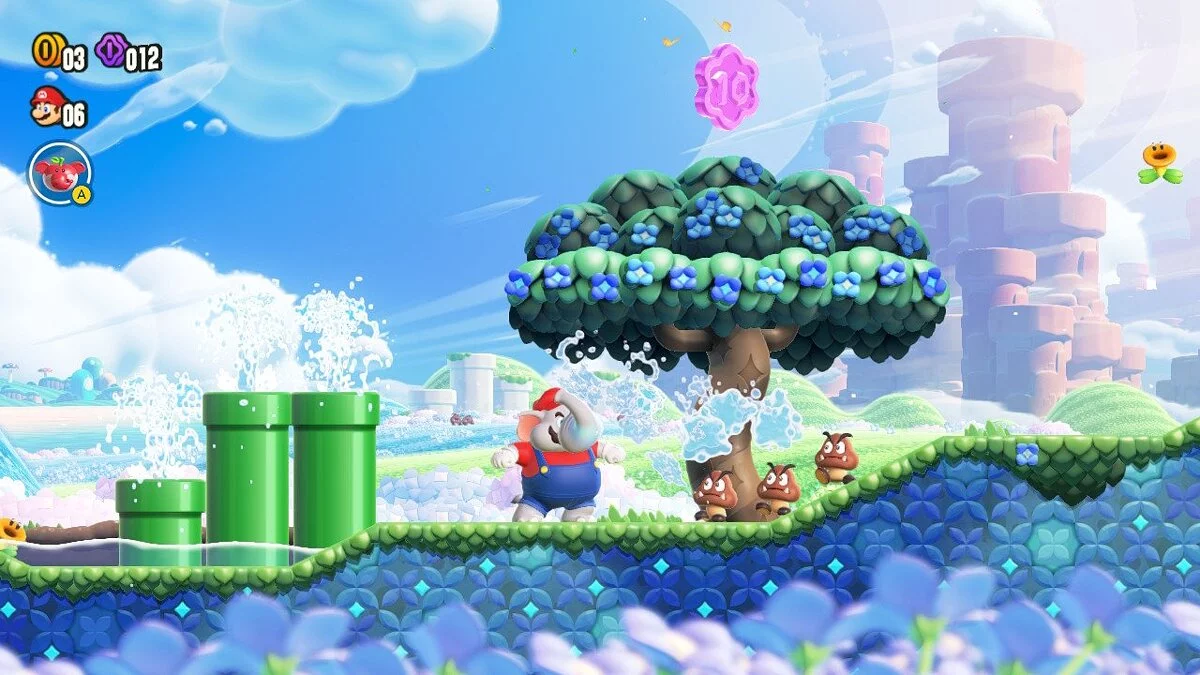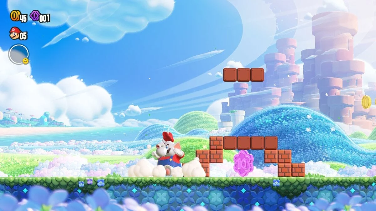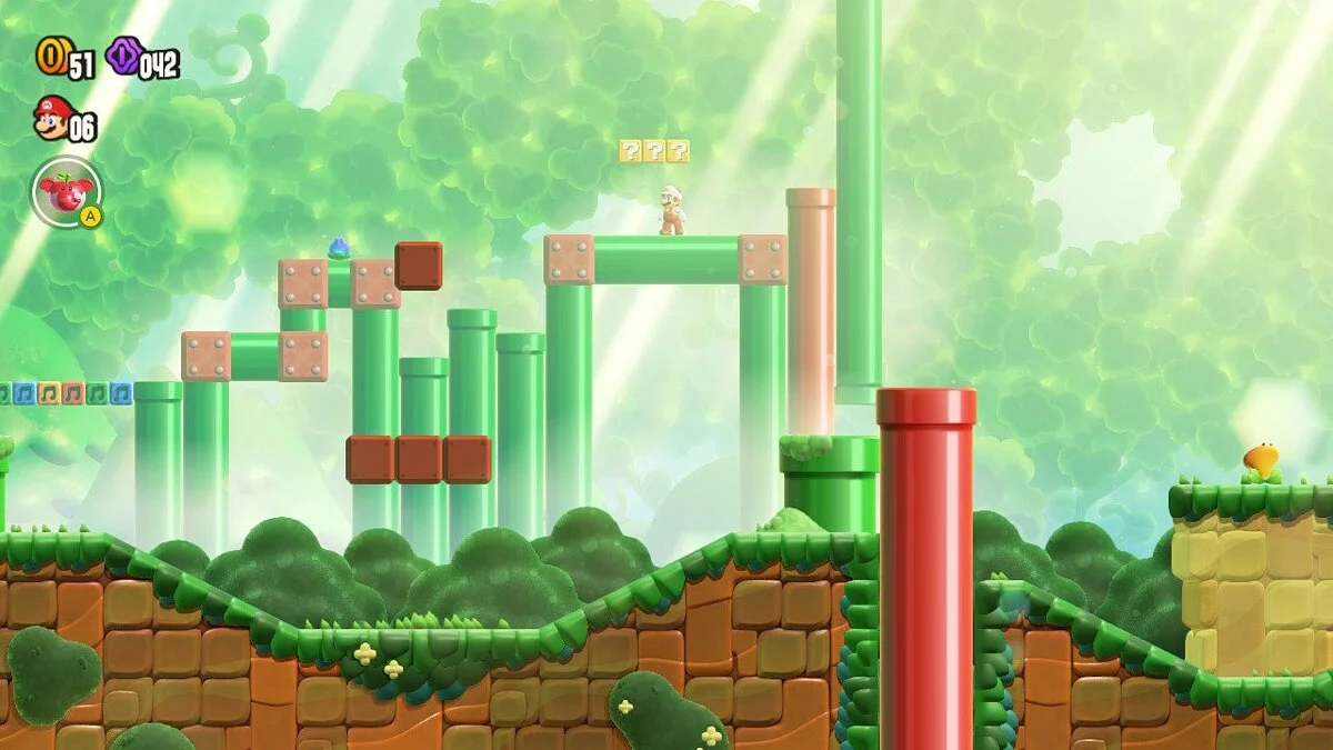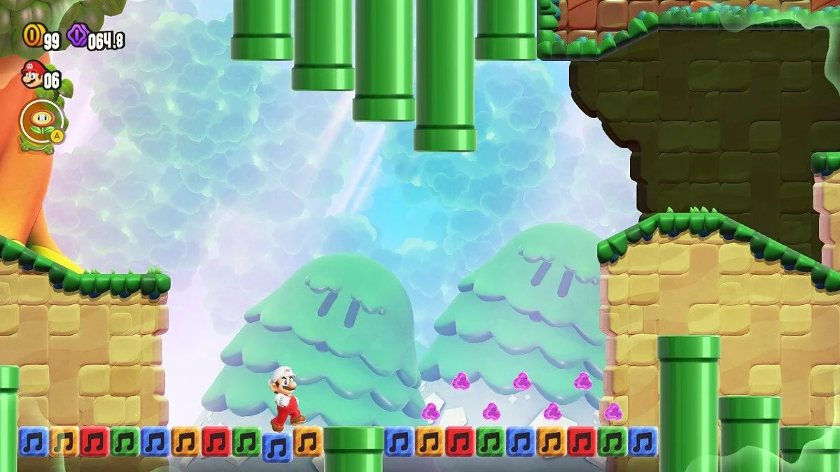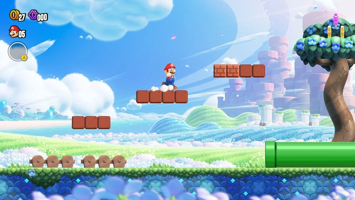 Впервые в серии Super Mario Bros местом действия стало не Грибное королевство, а новое и неизведанное — Цветочное. Новая местность дала разработчикам простор для креатива. Wonder с ходу удивляет своим непривычным дизайном локаций, интересной цветовой гаммой и уникальными механиками, от которых улыбка растягивается до ушей.
