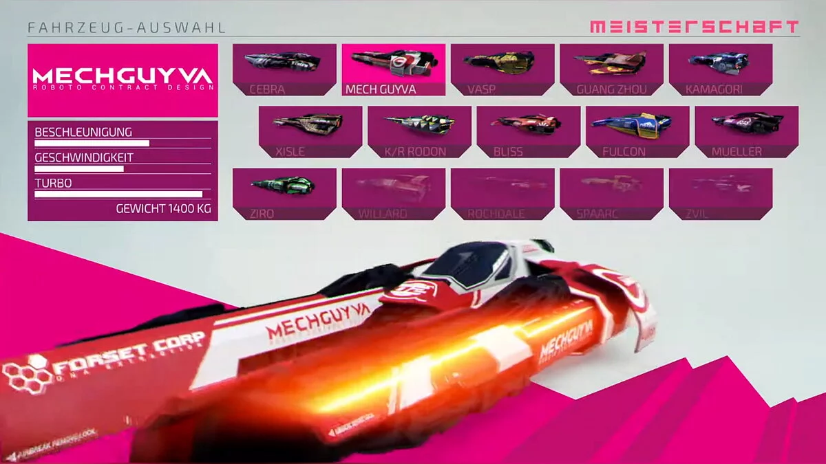 Каждый из пятнадцати гоночных болидов в этой игре представляет собой футуристичный автомобиль причудливой формы. Они не ездят по земле, а парят над ней. В результате машины могут разгоняться до запредельных скоростей. Из всех транспортных средств в FAST RMX мы остановились на Mech Guyva, как самом интересном с точки зрения дизайна.