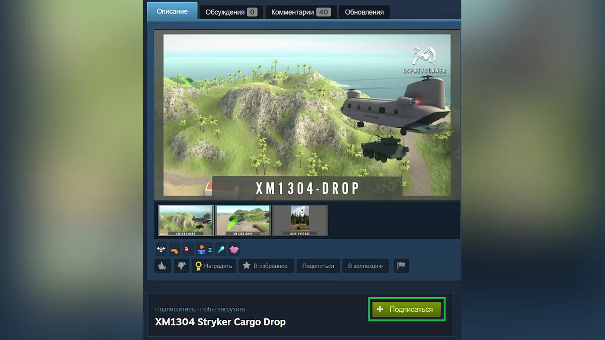 Для установки через Мастерскую Steam скачайте игру, зайдите на страницу мода, а после нажмите «Подписаться». Клиент Steam сам начнет скачивание и установку, вам останется только выбрать вариант запуска Ravenfield «Играть в Ravenfield».