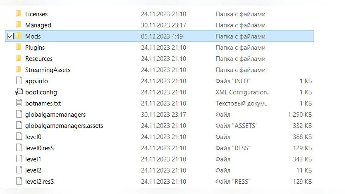 - Открыть каталог «ravenfield_Data», в нём найти или создать папку «mods».