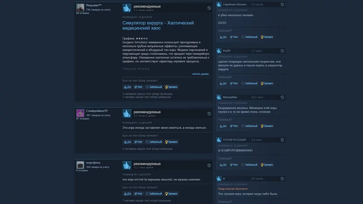 Британская студия Bossa Studios прославилась симулятором хлеба — I am Bread. Проект выстрелил не хуже Goat Simulator и довольно быстро обрел аудиторию. С геймдизайнерской точки зрения игра получилась неплохой. Годные головоломки и общая реализация не заставят пожалеть о потраченных деньгах. Surgeon Simulator — следующий проект Bossa Studios, который также обрел большую популярность. Во многом ей способствовали блогеры, которые мучались с неудобным управлением и ругались на глупую задумку. Симулятор хирурга стал визитной карточкой студии. Игра нашла свою нишу в VR и даже получила сиквел в 2021 году. Чего нельзя сказать о другой игре студии — Pigeon Simulator. Настоящий треш, который стыдно хранить на Steam-аккаунте.