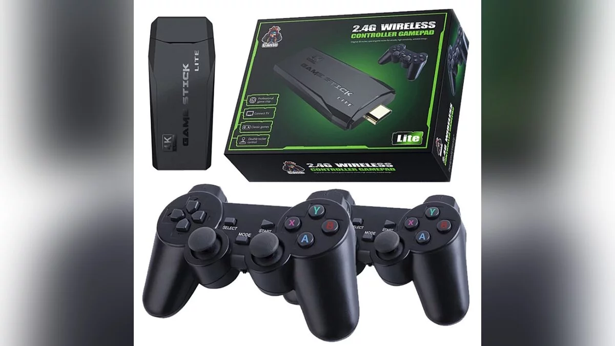 Компактная игровая консоль с ретро-играми Game Stick. Комплект состоит из «флешки», подключаемой к HDMI, дополнительного питания от USB и пары геймпадов. На карте памяти около 10 000 игр с Dendy, SEGA, Super Nintendo, ATARI, Game Boy и Sony PlayStation. Отличная возможность вспомнить детство или показать детям истоки лучших игровых серий, например, Mario.