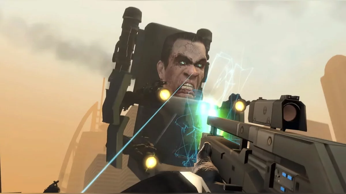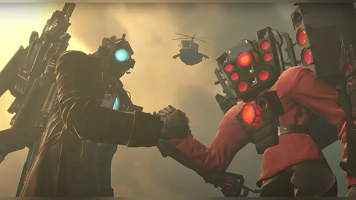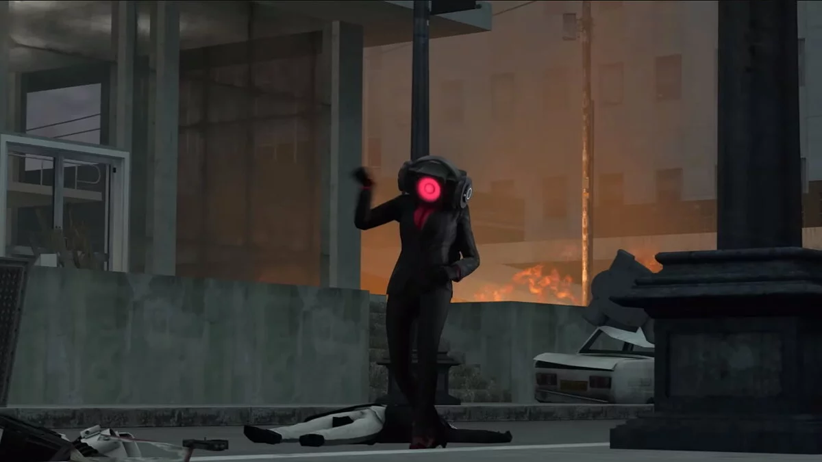 Во время очередного сражения появляется огромный скибидист с лицом G-Man из Half-Life 2. Он убивает всех камераменов лазерными лучами из глаз, как Супермен или Хоумлендер.
