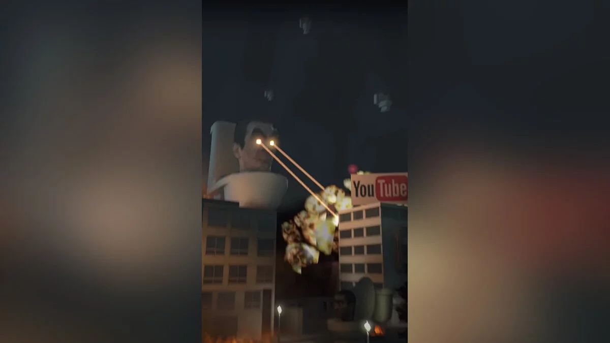 Скибидист с головой G-Man уничтожает штаб-квартиру YouTube. Напомним, что именно на этой платформе выходят все выпуски шоу Skibidi Toilet.