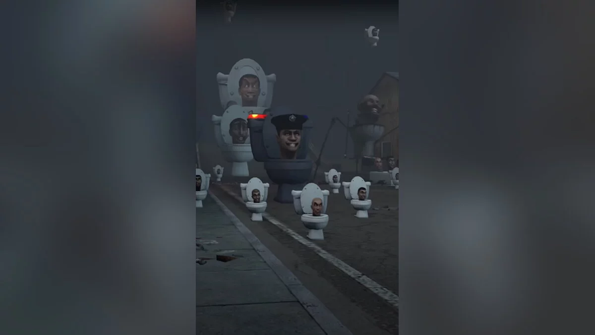 Появляется новый вид скибидистов, которые напоминают полицейских. На их головах — характерные фуражки, а на бачке унитаза — красно-синие мигалки.