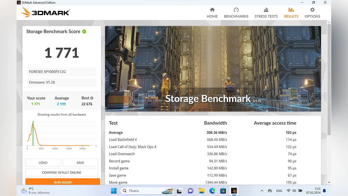 Также мы оценили мощность ноутбука в 3DMark: в тестах Fire Strike, Time Spy, CPU Profile и Storage Benchmark для проверки скорости загрузки игр на SSD.