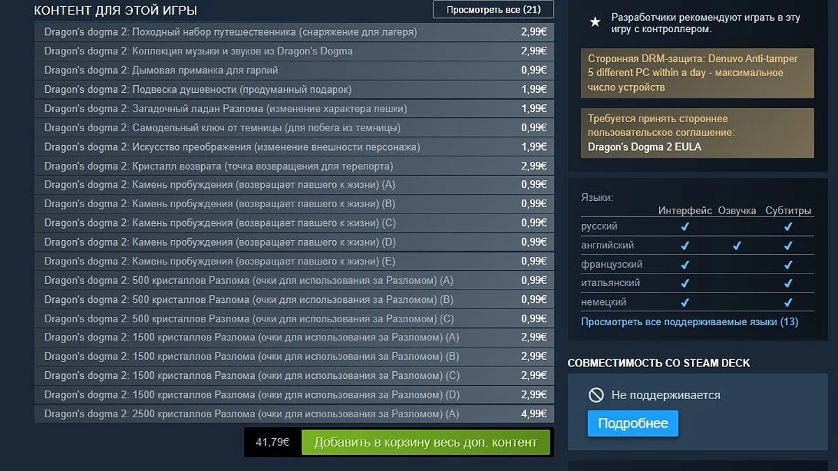 Много критики обрушилось на Dragon's Dogma 2 из-за монетизации, которую Capcom добавила на релизе. Например, в продаже есть комплект для воскрешения персонажей за $1, походный комплект исследователя за $3, который добавляет больше места в инвентаре, карточка быстрого перемещения за $3, а также возможность редактировать внешний вид персонажа за $2.