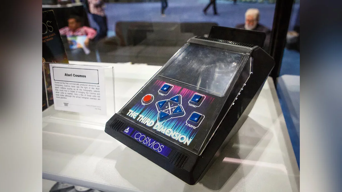 В том же году Atari анонсировала портативную Cosmos. Тогда Nintendo только начала выпуск Game & Watch с простеньким сегментированным экраном. А разработчики «Космоса» заявляли о трёхмерном дисплее. На деле эффект 3D достигался при помощи простеньких голографических покрытий. Когда пользователи вычислили обман, они разочаровались в новой портативке. Из-за испорченной репутации консоли было решено не выпускать её на рынок.