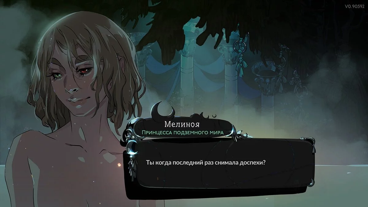 Первым делом стоит обратить внимание на новую главную героиню Мелиною, сестру протагониста первой части Загрея и дочери Аида. Она более хладнокровна, серьезна и менее игрива, нежели брат, но при этом очень ранима и чувственна. Ее личность хорошо прописана, а диалоги озвучены милым и притягательным голосом. Мелиноя получилась ничуть не хуже Загрея, к ее личности довольно быстро привыкаешь.