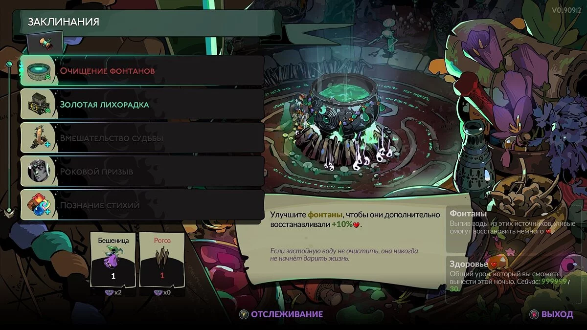 Мелиноя — не просто еще один ребенок Аида, но и ведьма, владеющая черной магией. В игре представлена обновленная система чар, которая привносит в сражения несколько тонкостей. Изучая заклинания, вы будете улучшать различные полезные предметы, призывать дополнительных персонажей, открывать расширения на локациях и другие приятные мелочи. Чтобы воспроизвести чары, необходимо собрать определенное количество ресурсов. Вот только собрать всё необходимое на уровне за один раз не выйдет, так как разработчики умышленно ограничили эту возможность. В арсенале вы можете найти инструмент, при помощи которого нужно добывать ингредиенты. Например, схватить кирку и отправиться долбить серебряную руду, а потом, перезапустив забег, снарядить героиню удочкой — и топать до ближайшего водоема за свежей рыбой. Ограничение в снаряжении выглядит не самым удачным решением, ведь это обыкновенное затягивание игрового процесса. При этом в Hades 2 есть еще и огород, где нужно выращивать растения для зелий.