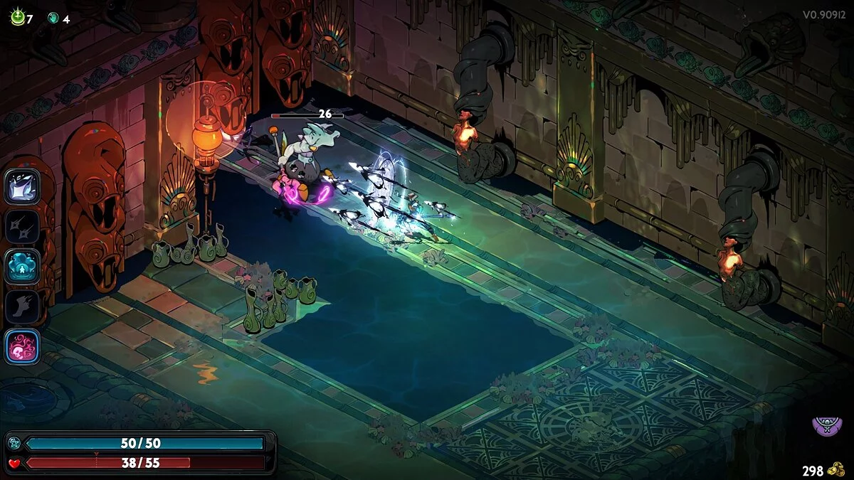 Игровой процесс за Мелиною во многом схож с геймплеем за Загрея, но есть пара ключевых изменений, которые приводят к совершенно другим стилям прохождения, которые ранее даже невозможно было представить. Например, в игре появился спринт, которым можно пользоваться без ограничений. Он не только спасает от множества атак противников, но и нужен в битвах. Вы сможете сбивать противников с ног, оглушать их натиском и наносить урон разными способами. Однако за высокую скорость приходится платить: Мелиноя не умеет исполнять трюки с рывками, как ее брат. Да, в Hades 2 есть рывок, который спасает от урона и помогает преодолевать препятствия, но задержка между первым и вторым использованием очень большая. Возможно, есть вариант улучшить рывок, но за все время прохождения нам эта способность так и не выпала.