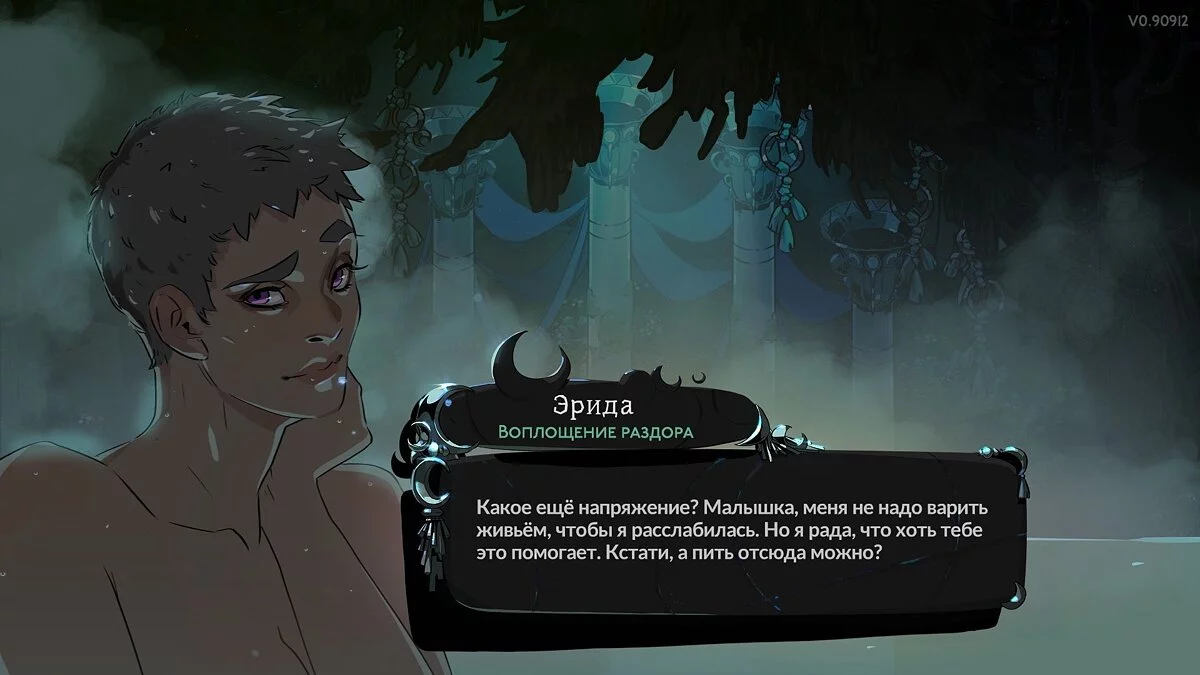 После изучения определенного заклинания в убежище появится настоящая сауна, куда вы сможете приглашать второстепенных персонажей на аудиенцию. Это позволит глубже изучить героев и узнать их с совсем другой стороны. Диалоги в Hades 2 написаны талантливыми сценаристами. Их всегда интересно читать, а основная информация подается без лишнего пафоса и воды. Завязка основного сюжета получилась довольно простой, но благодаря интересным персонажам и ситуациям следить за его развитием интересно. Мы крайне рекомендуем сильно не потеть в забегах, ведь смерть в Hades 2 всегда вознаграждается порцией диалогов и раскрытием сценарных перипетий.
