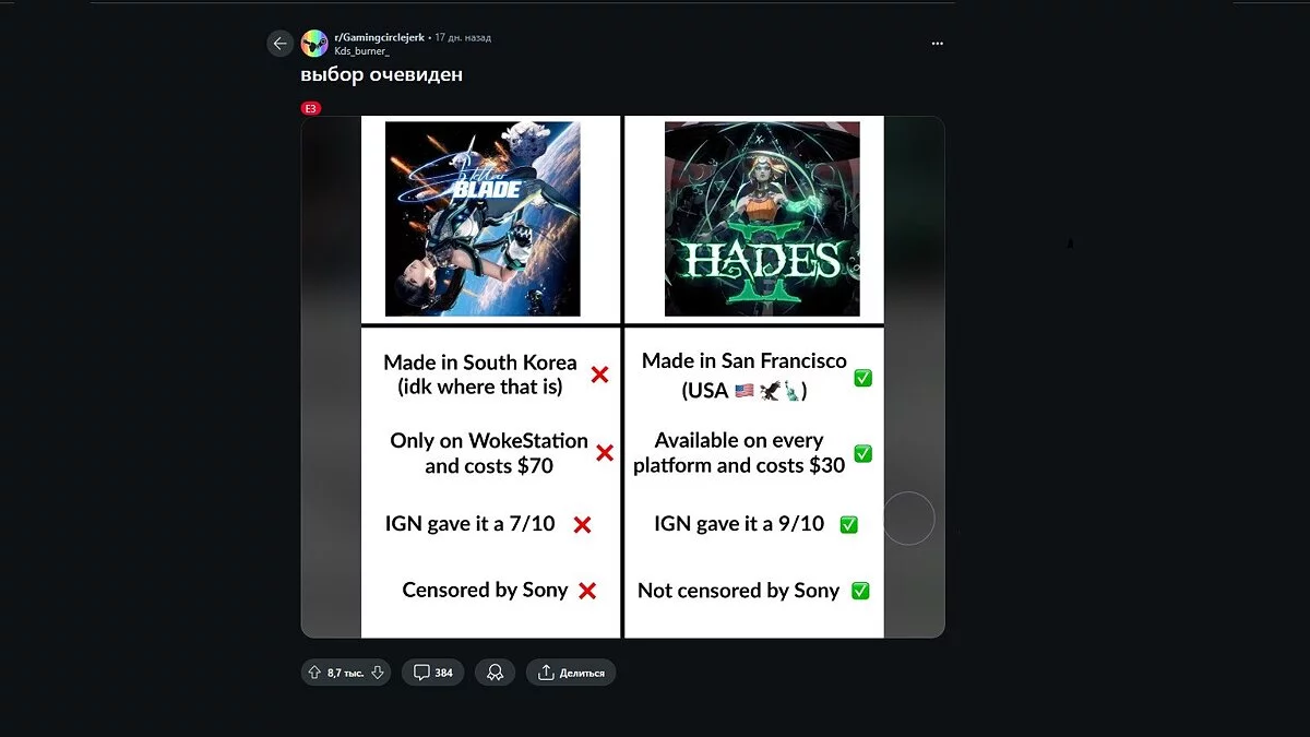 «Если бы Stellar Blade делала IGN». Геймер высмеял журналиста, раскритиковавшего сексапильность главной героини -