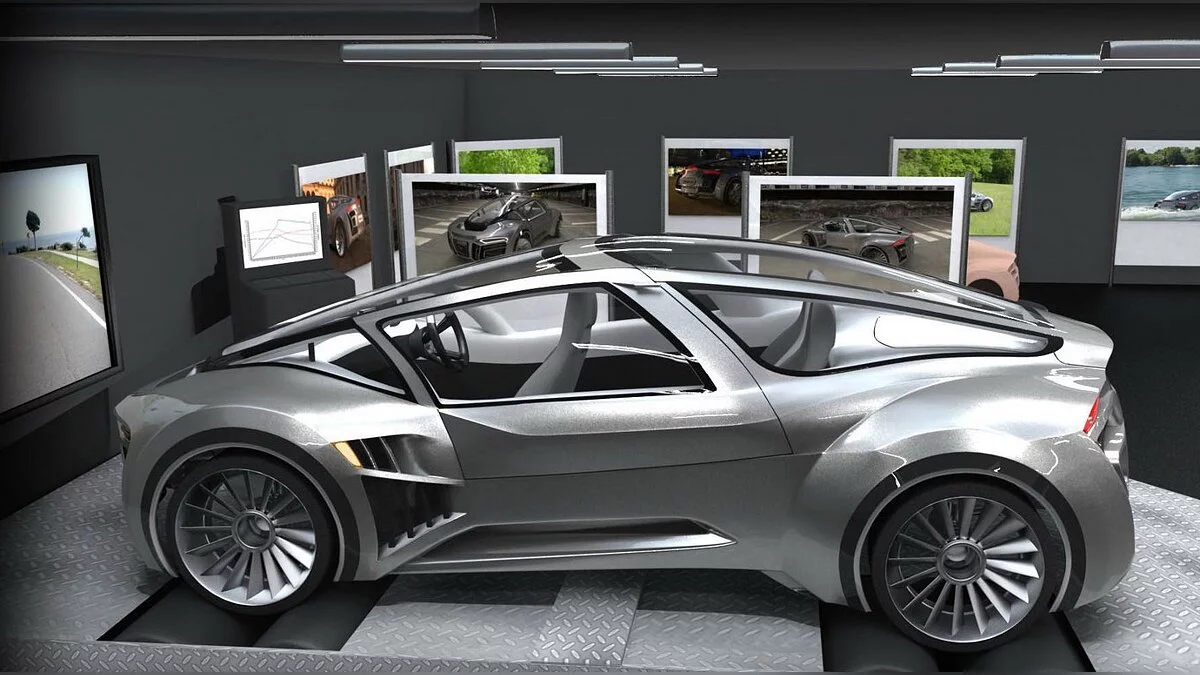 Внешне этот электрокар выглядит стандартно и немного напоминает Audi R8. Однако его особенность в том, что он может двигаться по поверхности воды и не тонуть. Стоит отметить, что его колёса могут разворачиваться на 90 градусов. Это позволит автомобилю двигаться строго в бок, как танк у Бэтмена из Arkham Knight.