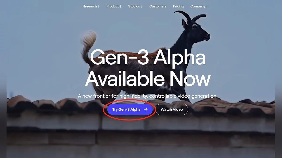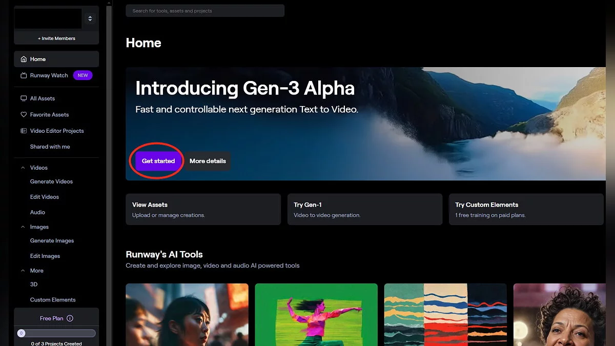 - Выберите вариант «Попробовать альфа-версию Gen-3» (Try Gen-3 Alpha), который находится в центре экрана.