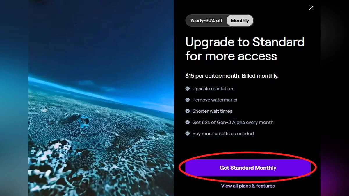 - Оплатите месячную или годовую подписку для доступа к Gen-3.