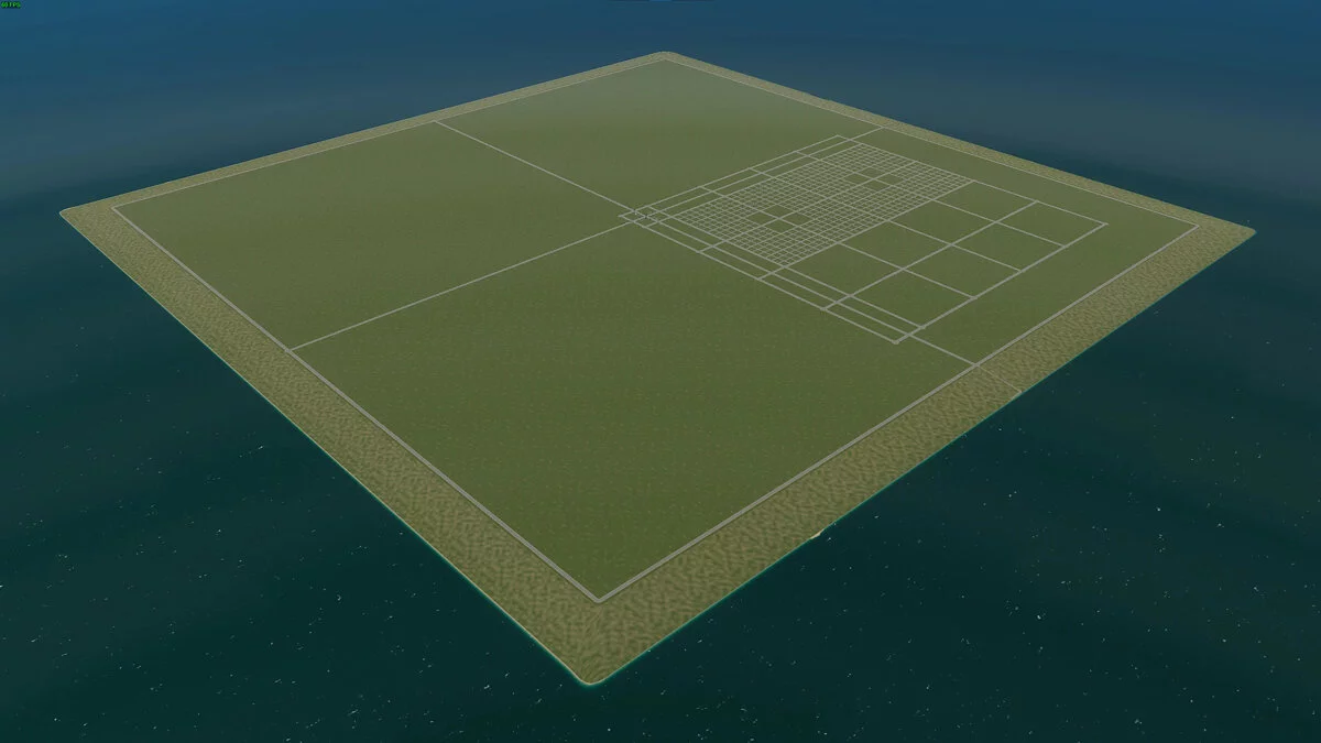 Своеобразный антипод предыдущей карте. Здесь нет никакого рельефа, только ровная поверхность земли. Отличный вариант для тех, кто хочет сосредоточиться исключительно на строительстве.