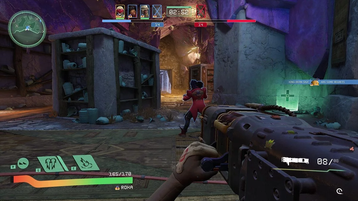 Самым популярным персонажем у бета-тестеров стала Рока — местный аналог Фарры из Overwatch и солдата из Team Fortress 2. Да, она довольно щуплая в плане очков здоровья, но ее ракетная установка шустро отправляет вражескую команду на респаун. Урон по площади большой, а способность «Взрывное пике», когда девушка резким ударом об землю взрывает все вокруг, ощущается абсолютной имбой.