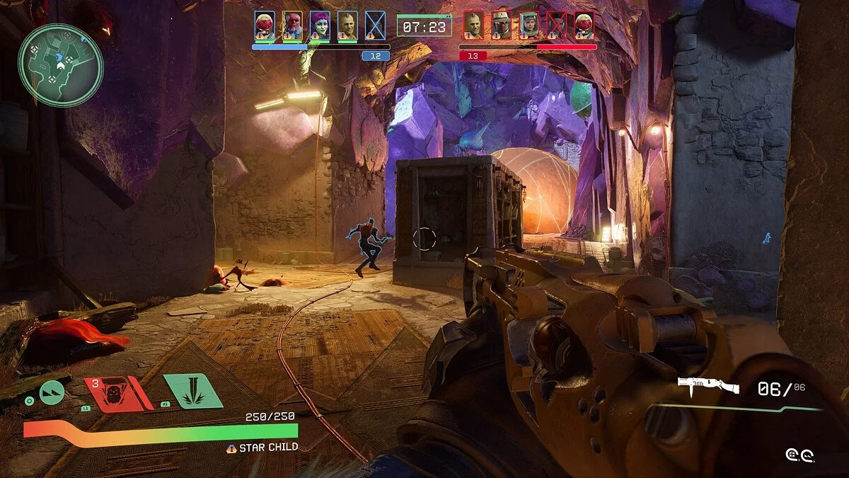 Карты в Concord — ужасны. Тотальная калька локаций Destiny в плане дизайна. На одной карте даже своя версия Стража есть в небе. Текстуры в большинстве случаев серые, а геометрия уровней абсолютно не подходит для командных сражений. Хуже карты в плане дизайна мы встречали только в Valorant.