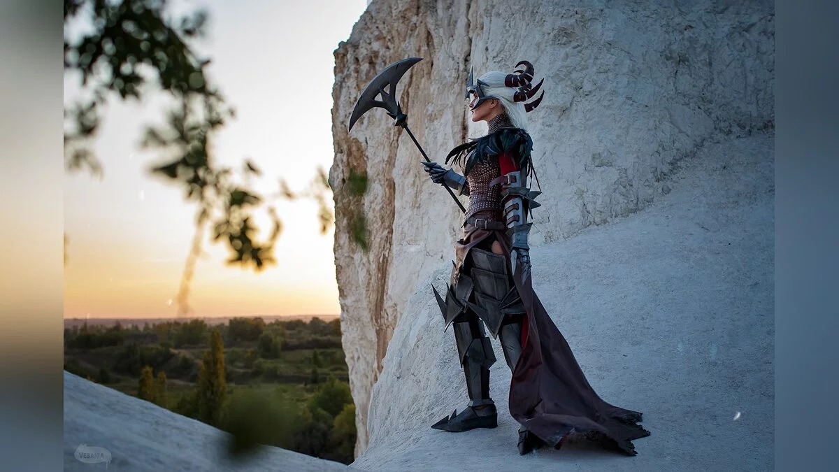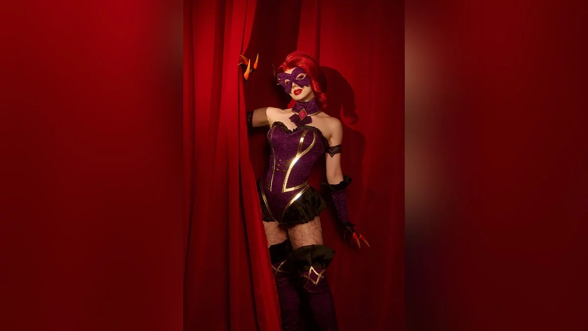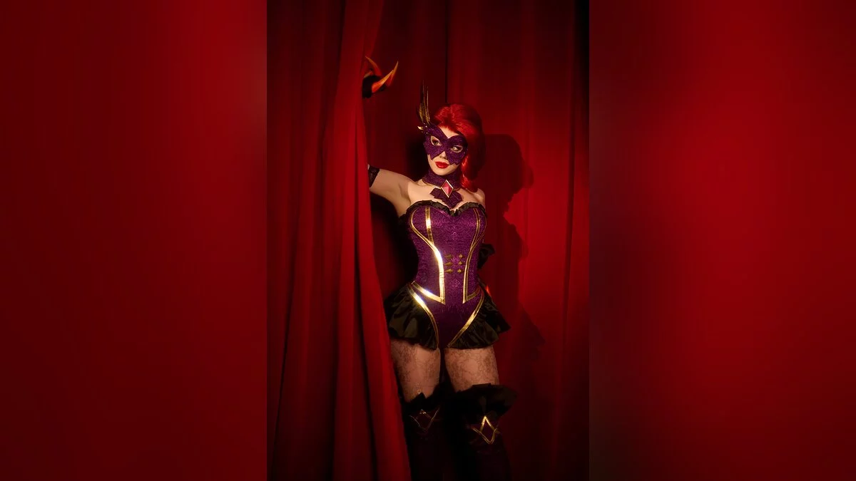 У коварной демонессы Эвелинн из «Лиги легенд» много каноничных нарядов. Среди них есть маскарадное платье. Глядя на такую красавицу, будущая жертва не понимает, что за внешностью изящной девушки скрывается кровожадное создание, которое наслаждается страданиями людей. А когда догадается — будет слишком поздно. Косплей на Эвелинн сделала KamikoZero.