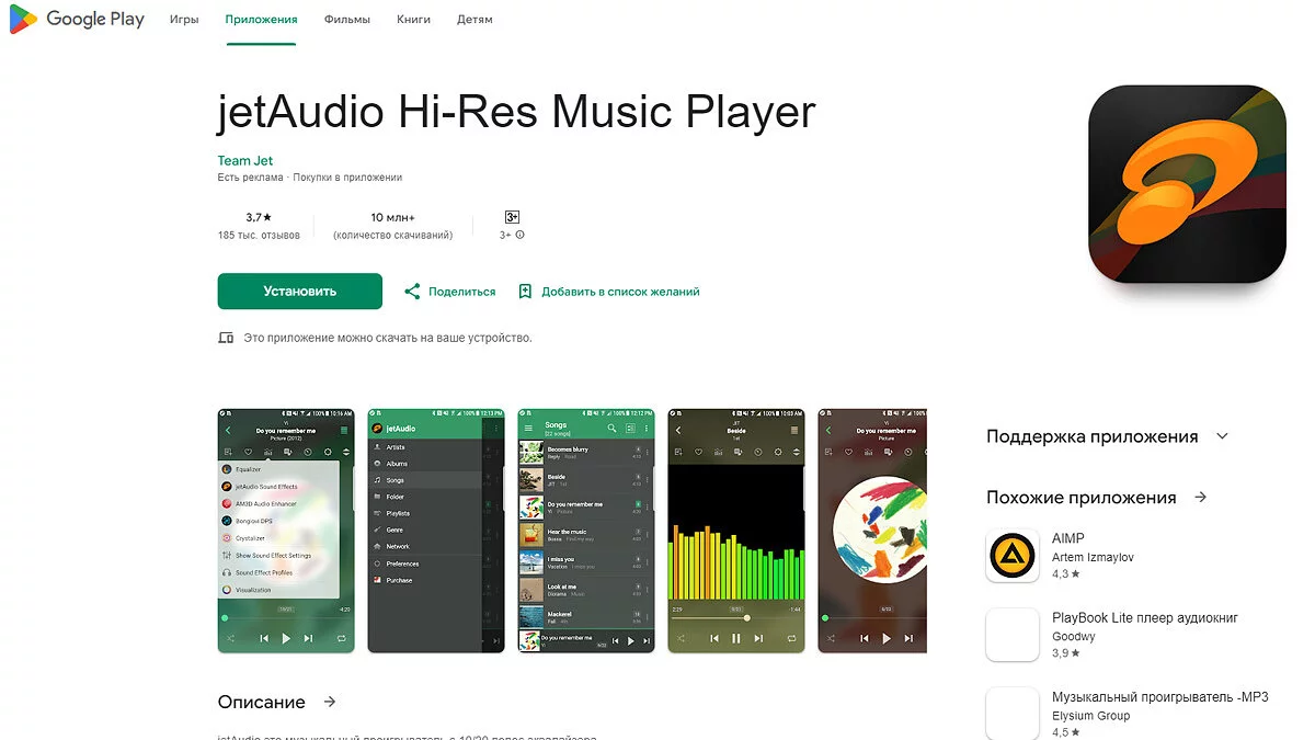 Еще один музыкальный проигрыватель для смартфона. Помогает с настройками эквалайзера (до 32 настроек), поддерживает все форматы аудиофайлов, предлагает различные звуковые эффекты для музыки, помогает передавать файлы и позволяет точно отрегулировать скорость воспроизведения.