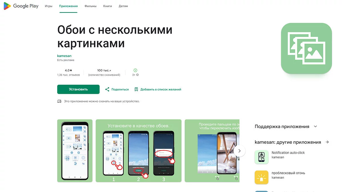 Буквально обои для телефона с несколькими картинками. Простое приложение, которое позволяет проигрывать на экране смартфона несколько изображений, заменяя их через какое-то время. Подойдет для тех, кому хочется разнообразить рабочий стол смартфона.