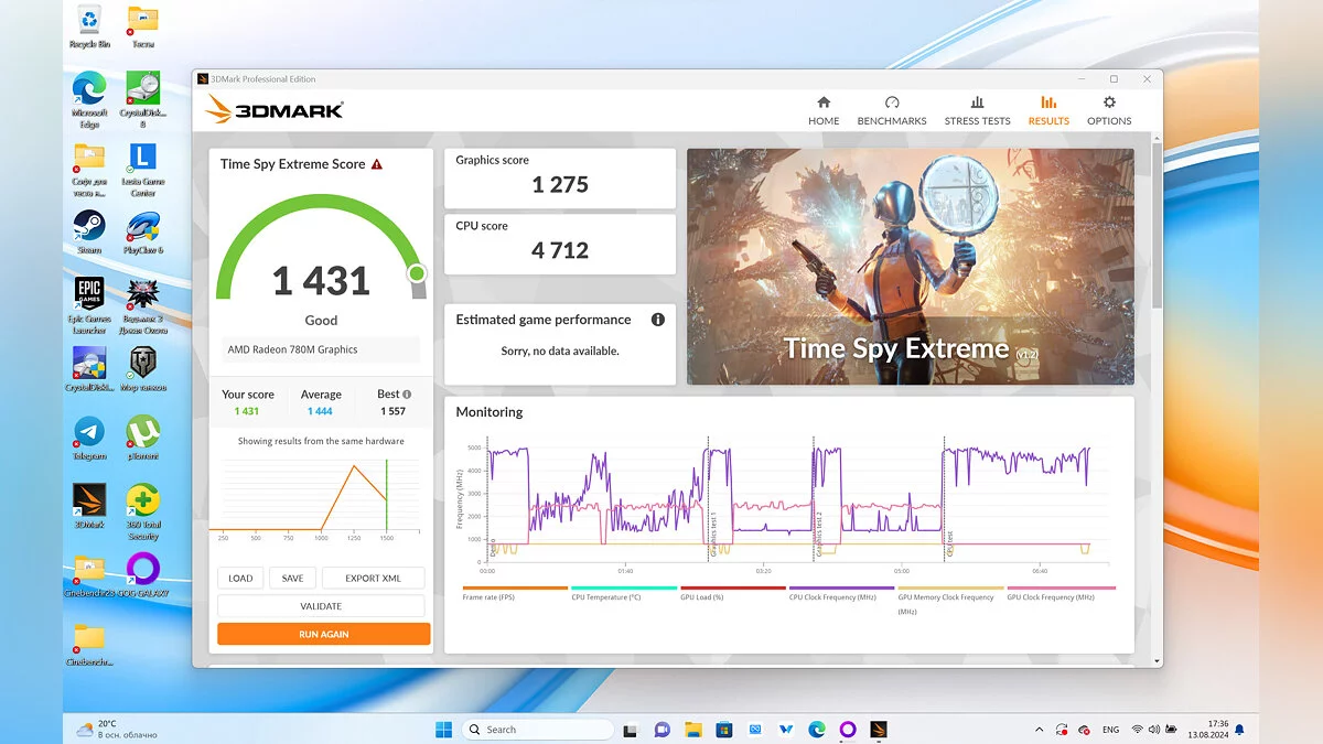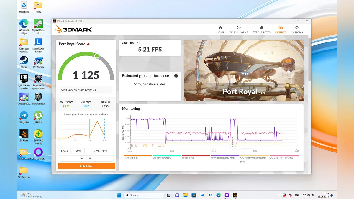 Ещё мы воспользовались 3DMark и прогнали нашего подопытного в следующих тестах: Time Spy, Time Spy Extreme, Sky Diver, Port Royal, Steel Nomad, CPU Profile и Storage Benchmark (тест скорости загрузки игр на SSD). Результаты на скриншотах.