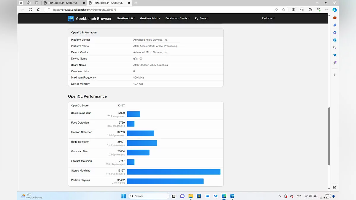 Ноутбук HONOR MagicBook X16 Plus мы проверили в синтетических тестах Cinebench R23, Cinebench 2024, Geekbench CPU-Z, CrystalDiskMark и CrystalDiskInfo. На скриншотах — все результаты.